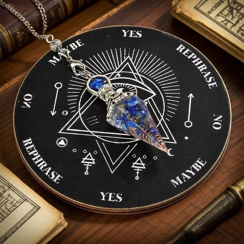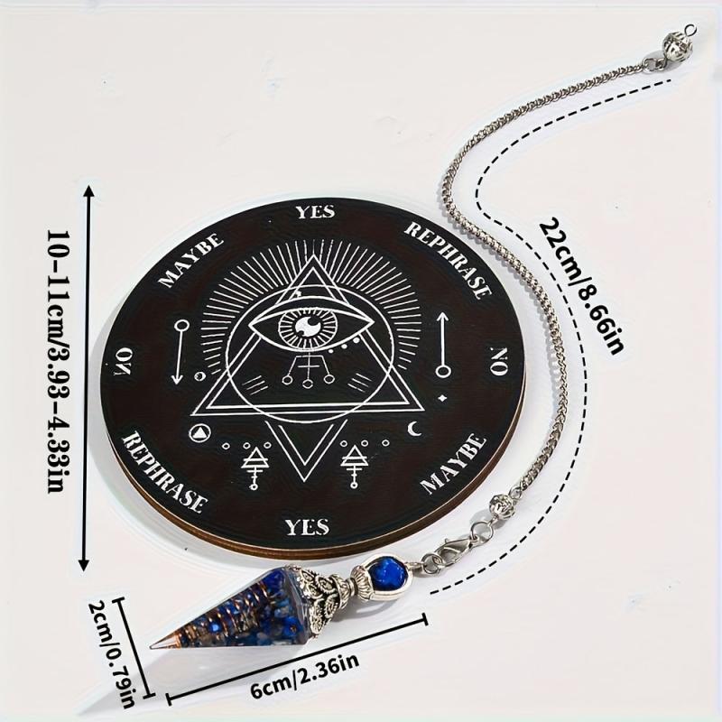 Enhance your divination skills with this 2-piece kit featuring a wooden board and a striking lapis lazuli pendulum. Perfect for those who love mystery and exploration.
