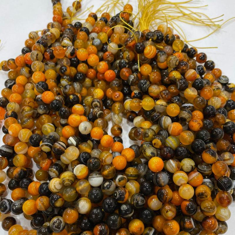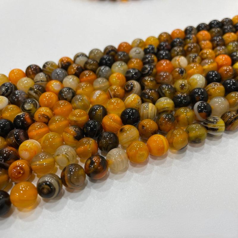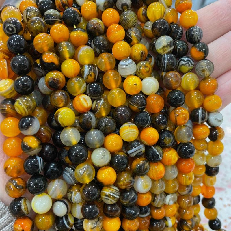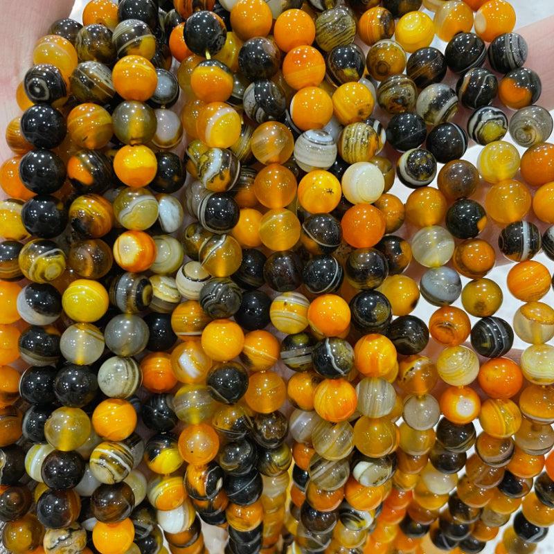 Vibrant orange and patterned bumblebee agate beads perfect for DIY jewelry making. Ideal for necklaces, bracelets, and more.