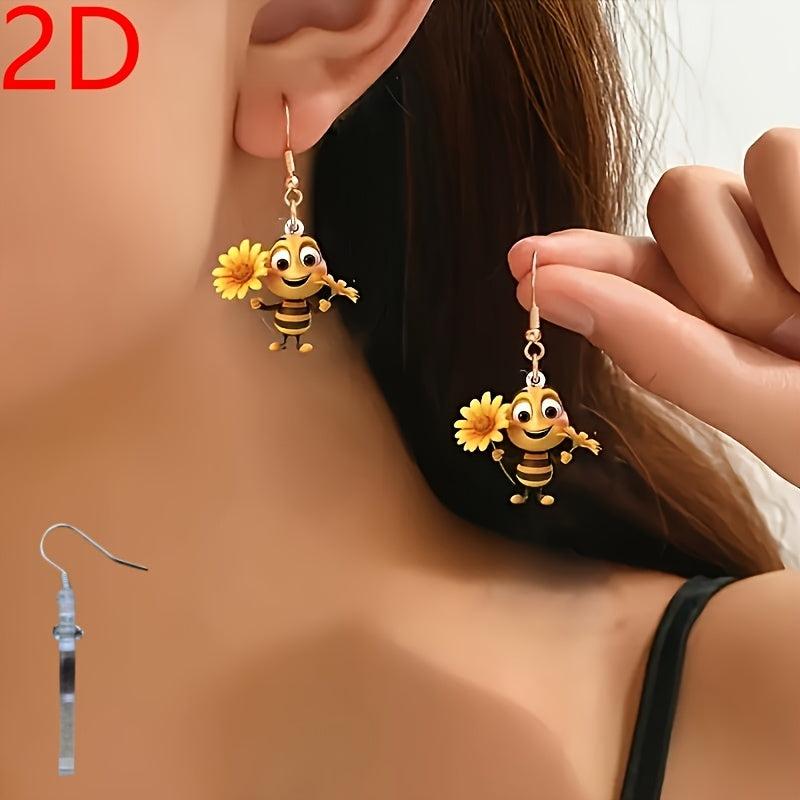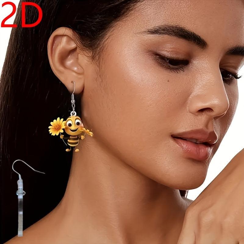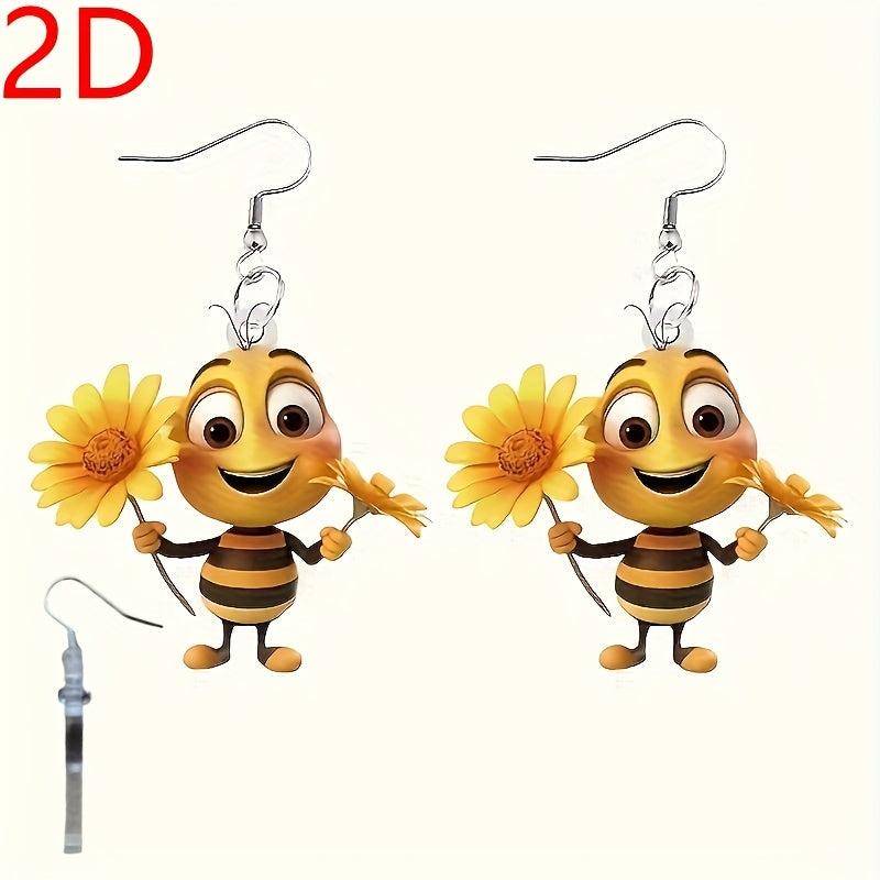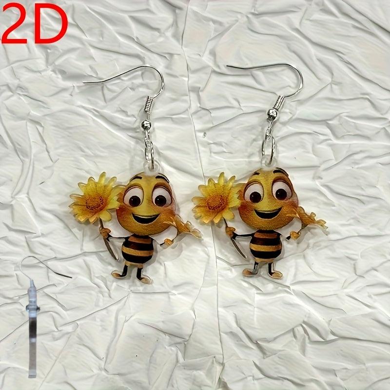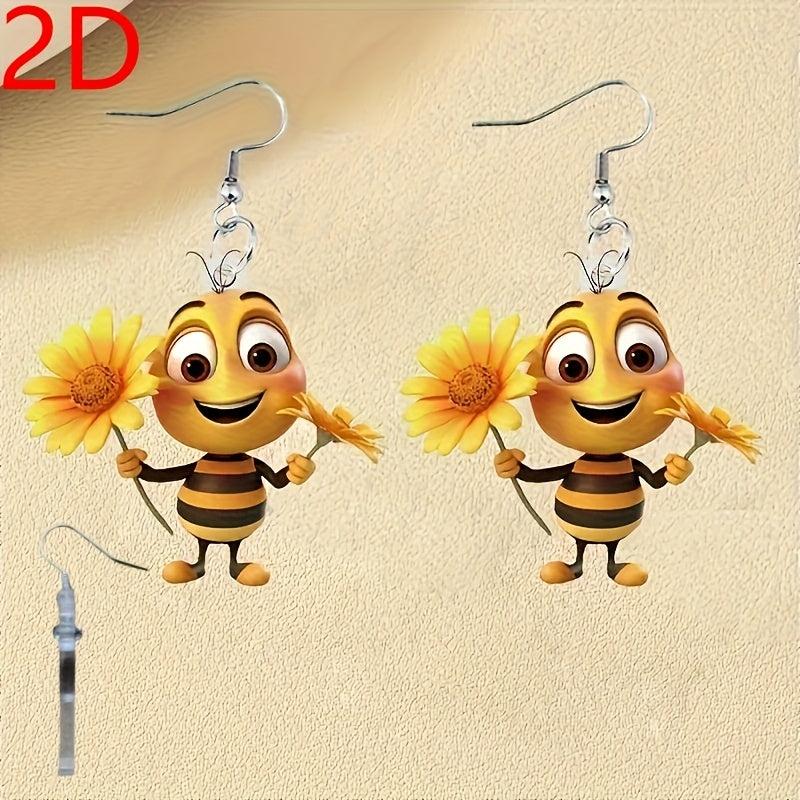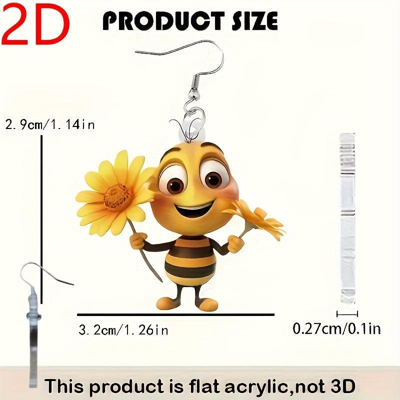 These adorable 2D flat cartoon yellow bee earrings are made from durable acrylic, perfect for adding a touch of fun to your outfit.