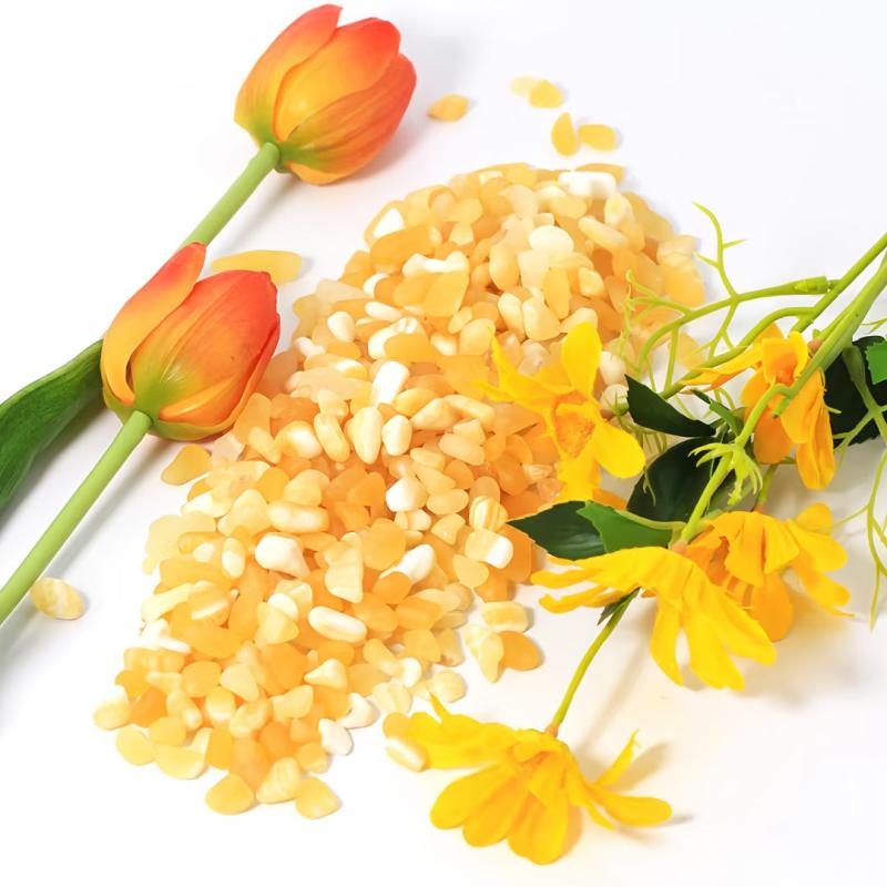 Enhance your crafts, flower pots, and fish tanks with this beautiful yellow calcite crushed stone. Perfect for various DIY projects.