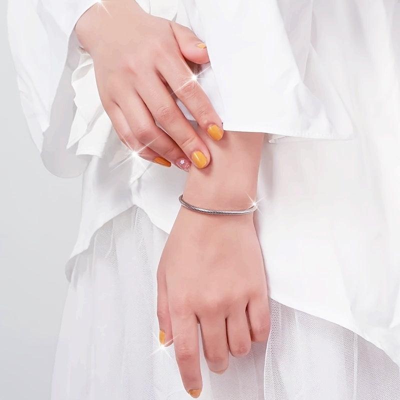 This 2mm solid stainless steel bracelet is washable, fade resistant, and a versatile accessory for women.