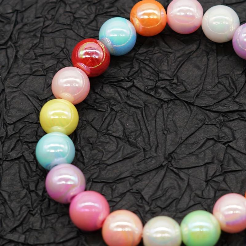 This stylish bracelet features a combination of acrylic beads in vibrant candy colors. Perfect for parties and vacations, it adds a fun and youthful touch to any outfit.