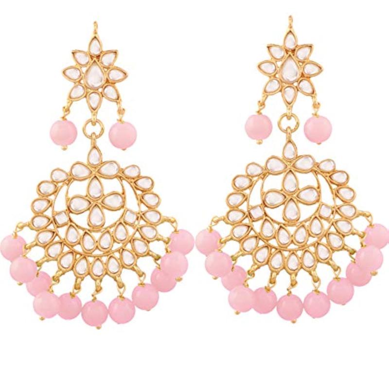 Elegant plated zinc alloy earrings with traditional Kundan and pearl design.