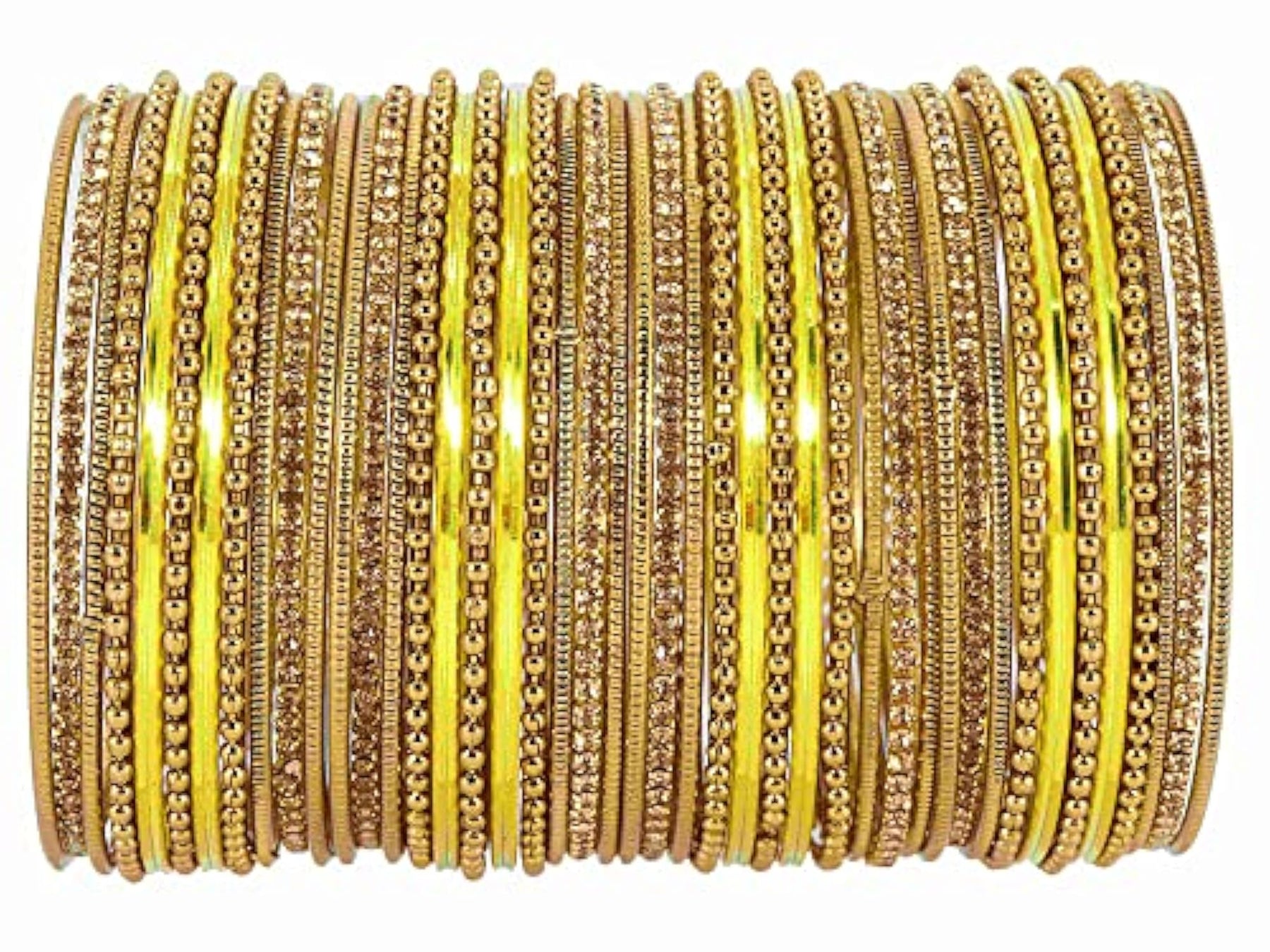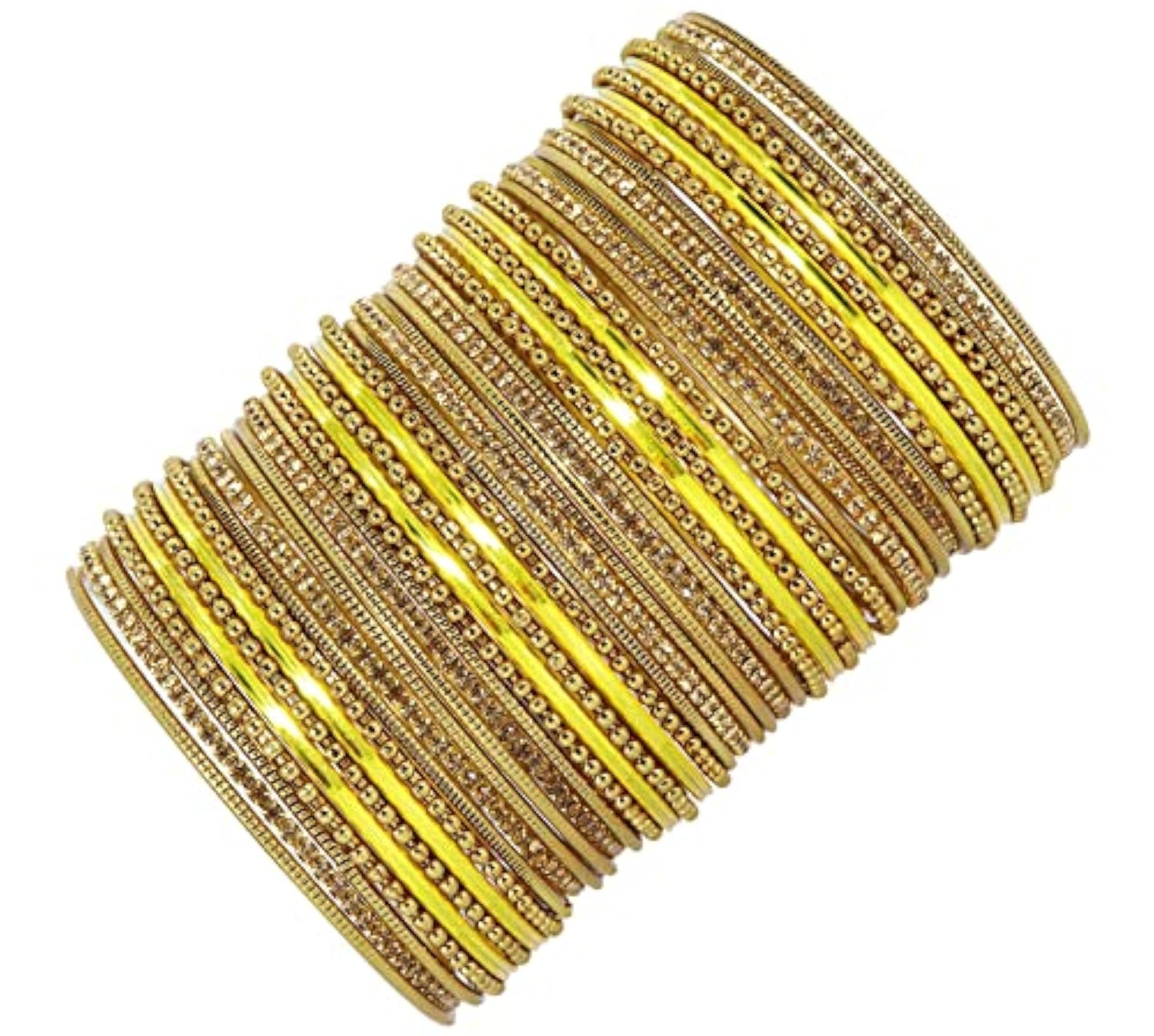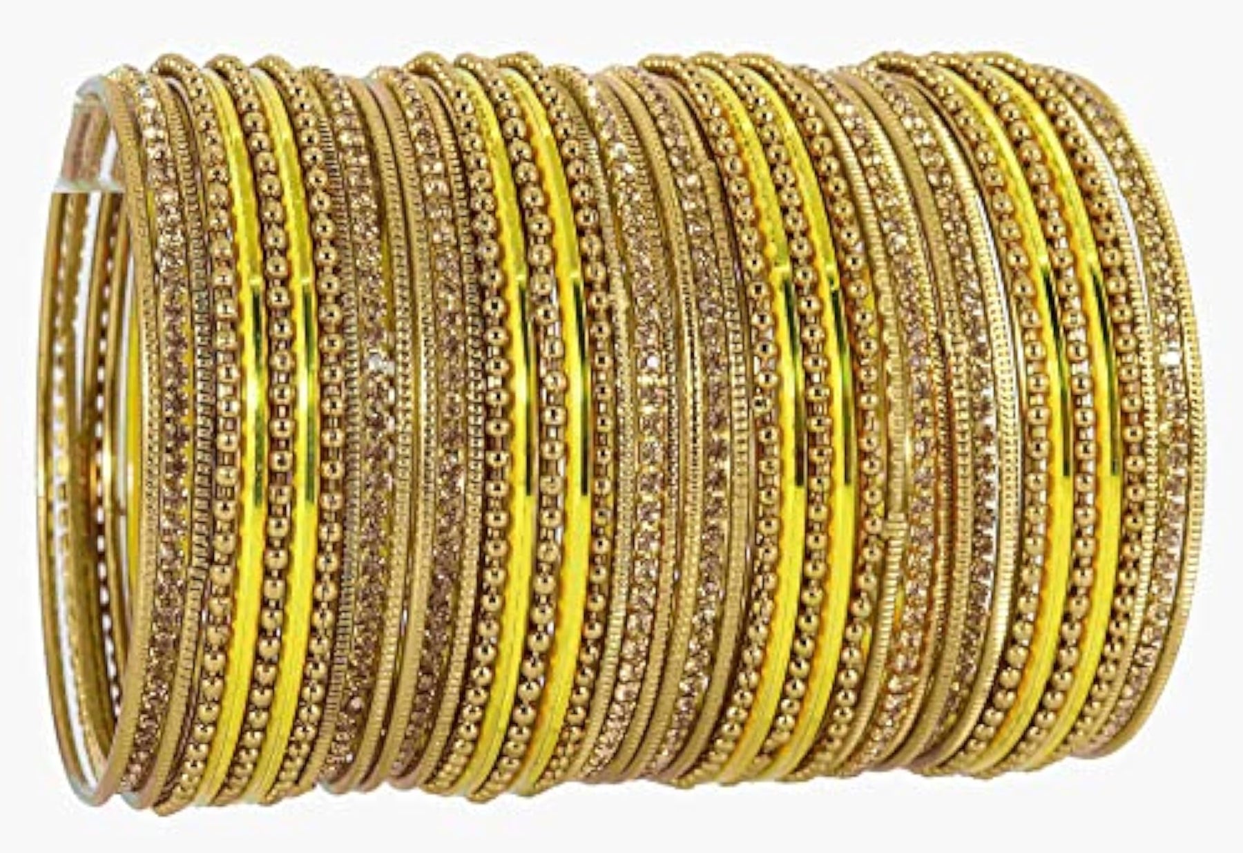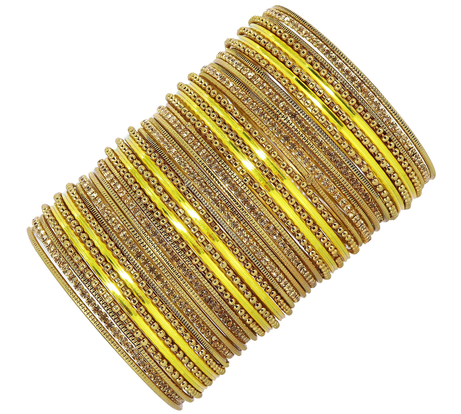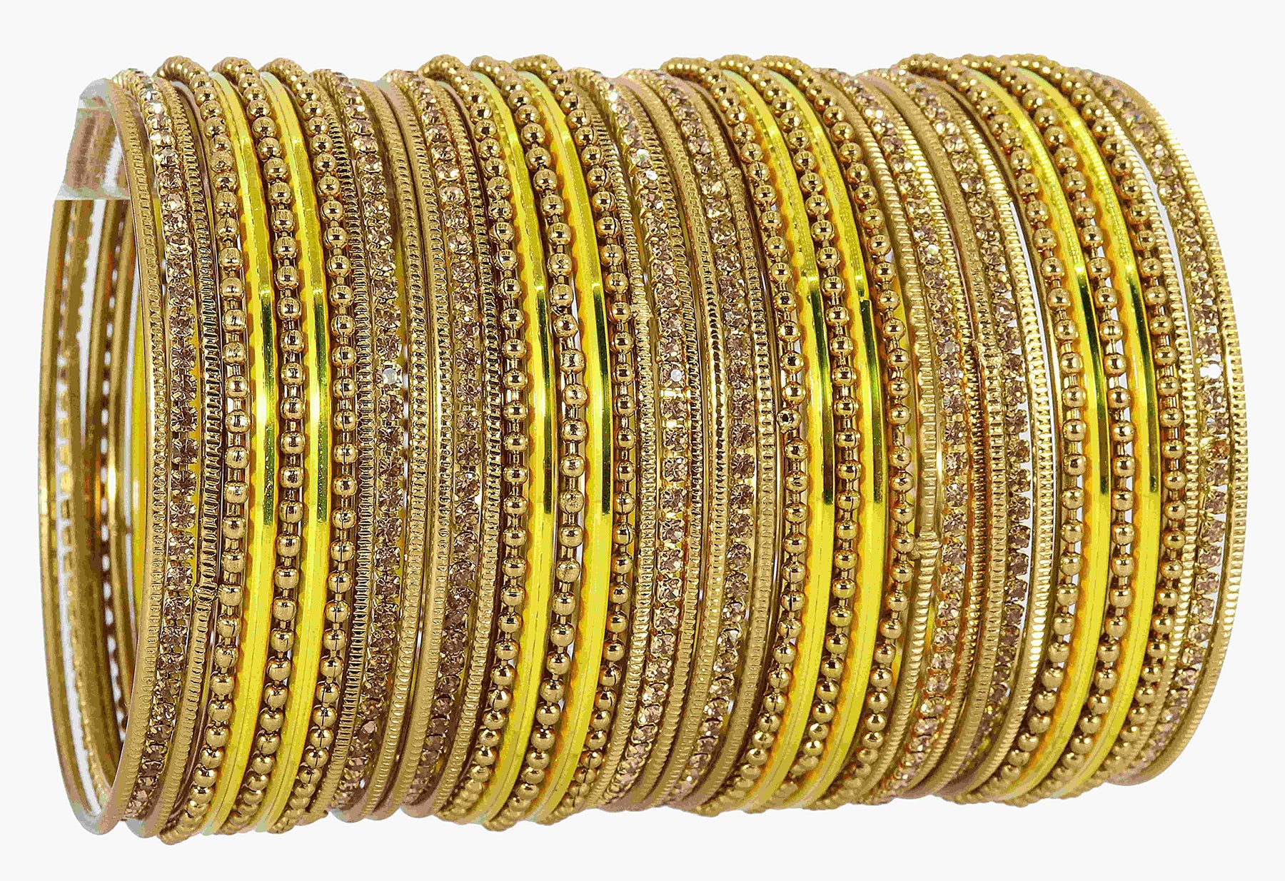This elegant bangle set features base zircon gemstones studded on a glossy finished non-precious metal. The bangles are connected with a plated cutting pattern ballchain for a stylish look.