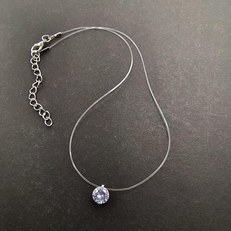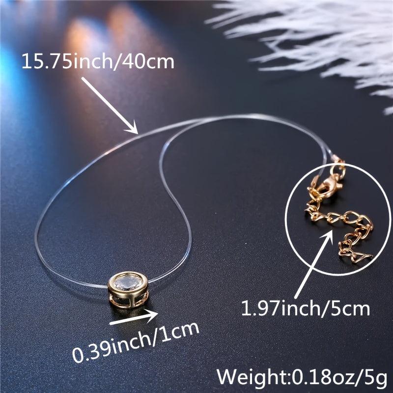 This elegant fish line necklace features zirconia stones and a transparent design, perfect for adding a touch of sparkle to your look.