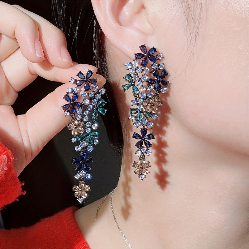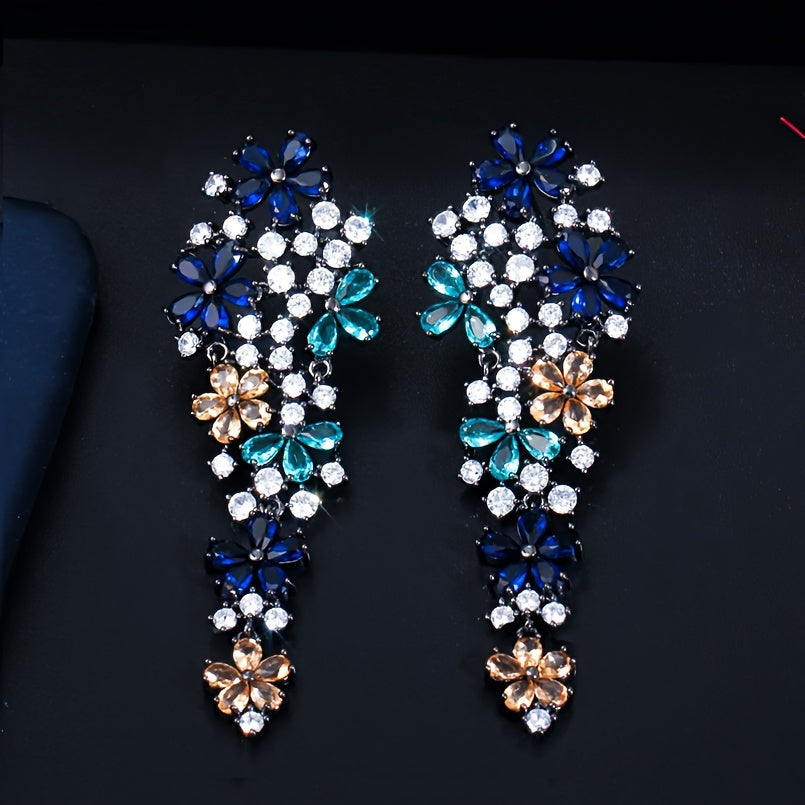 Add a touch of sparkle to your outfits with these zirconia dangle earrings featuring a flower design. Perfect for everyday wear or special occasions. Makes a great gift for her.