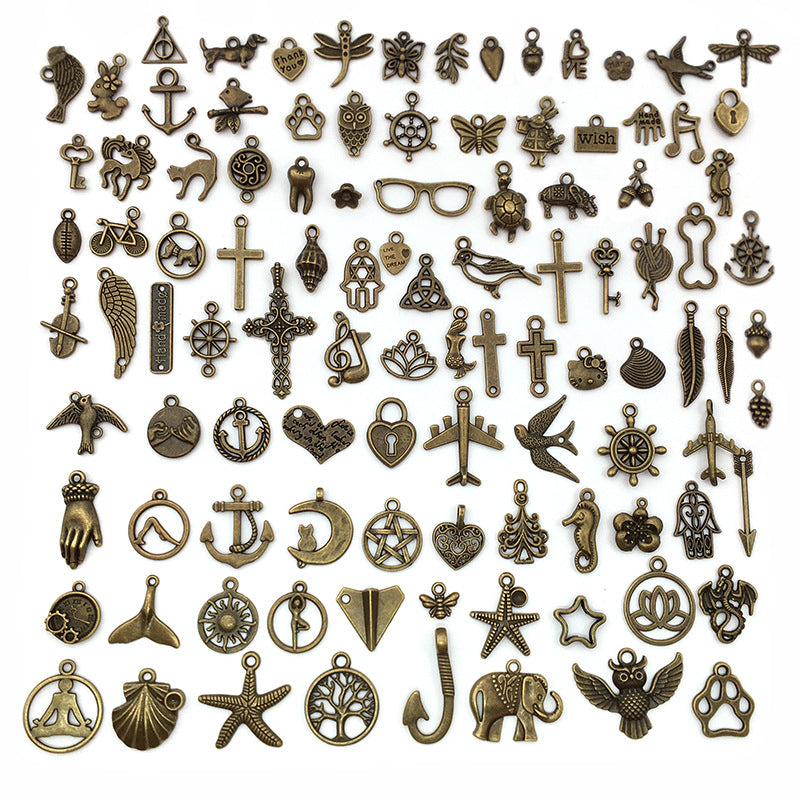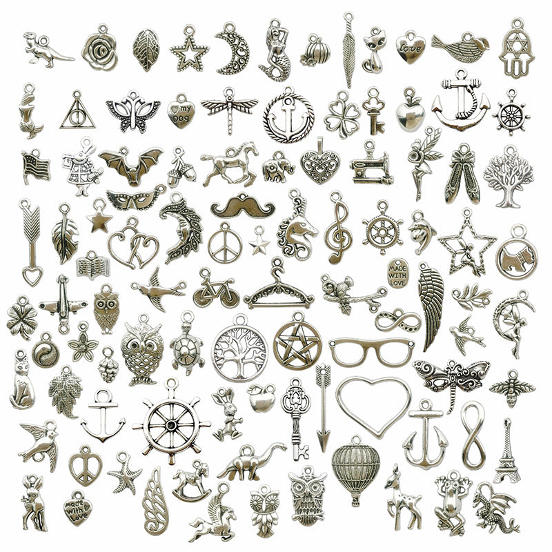 Get creative with these 100 animal-shaped zinc alloy pendants for designing your own necklaces, bracelets, and other jewelry pieces.