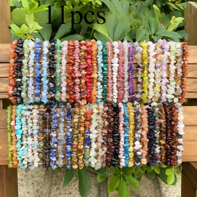 Get ready for summer with this 11pcs set of natural gravel bracelets. Perfect for a bohemian look, these bracelets are great for DIY projects. Colors will be randomly selected.