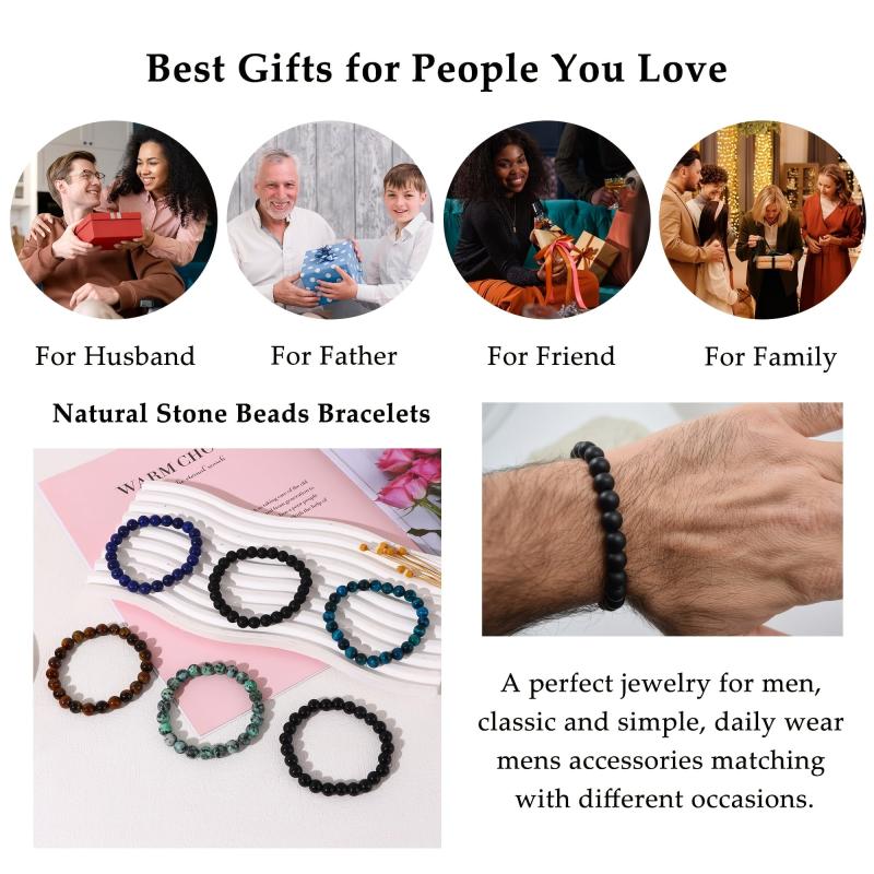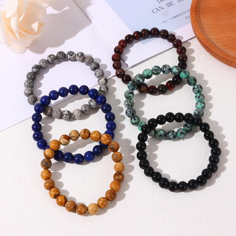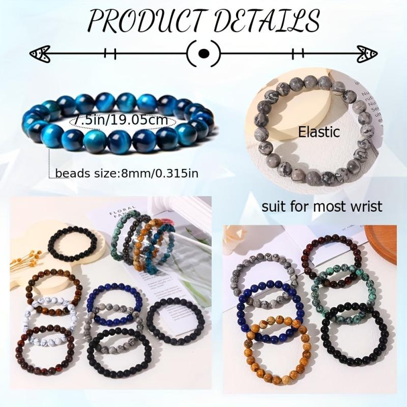 Enjoy the beauty of natural stones with these 12 semi precious bead bracelets. Each 8mm stone is handpicked for quality. Stretch design for easy wear.