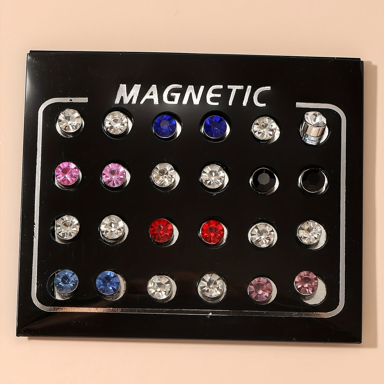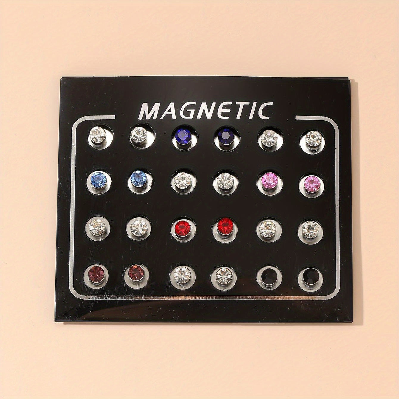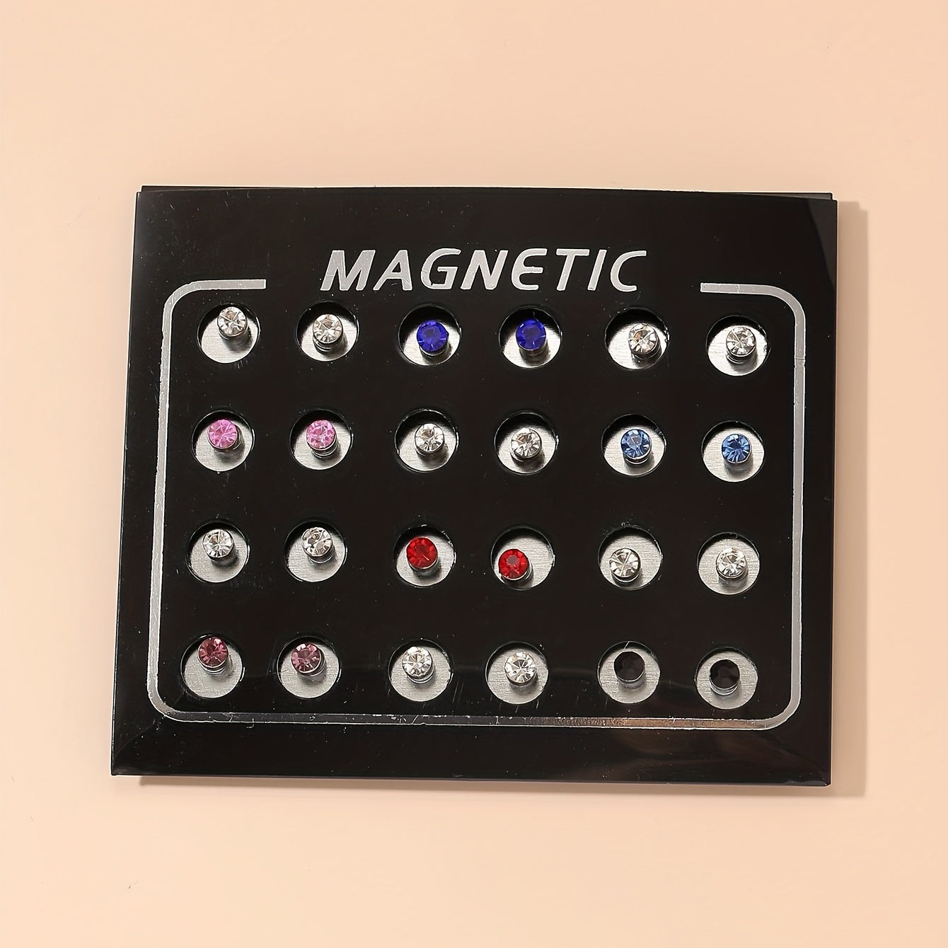 Enhance your style with these 24pcs multicolor magnetic rhinestone stud earrings. Perfect for men who want to add a touch of sparkle to their look.