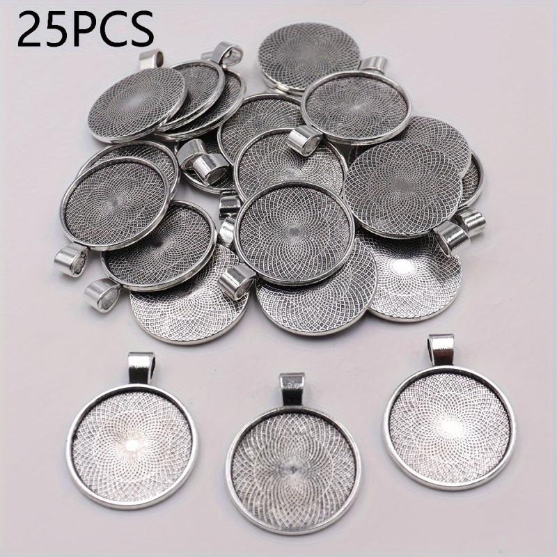 Elegant and simple pendant setting designed for DIY photo jewelry making. This set includes 25 round pendant settings with a 2 frame convex blank base. Add your own photo or design to create unique and personalized accessories.