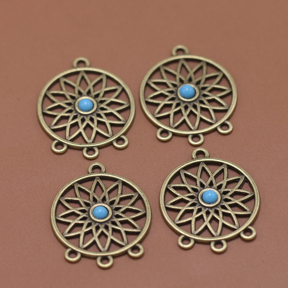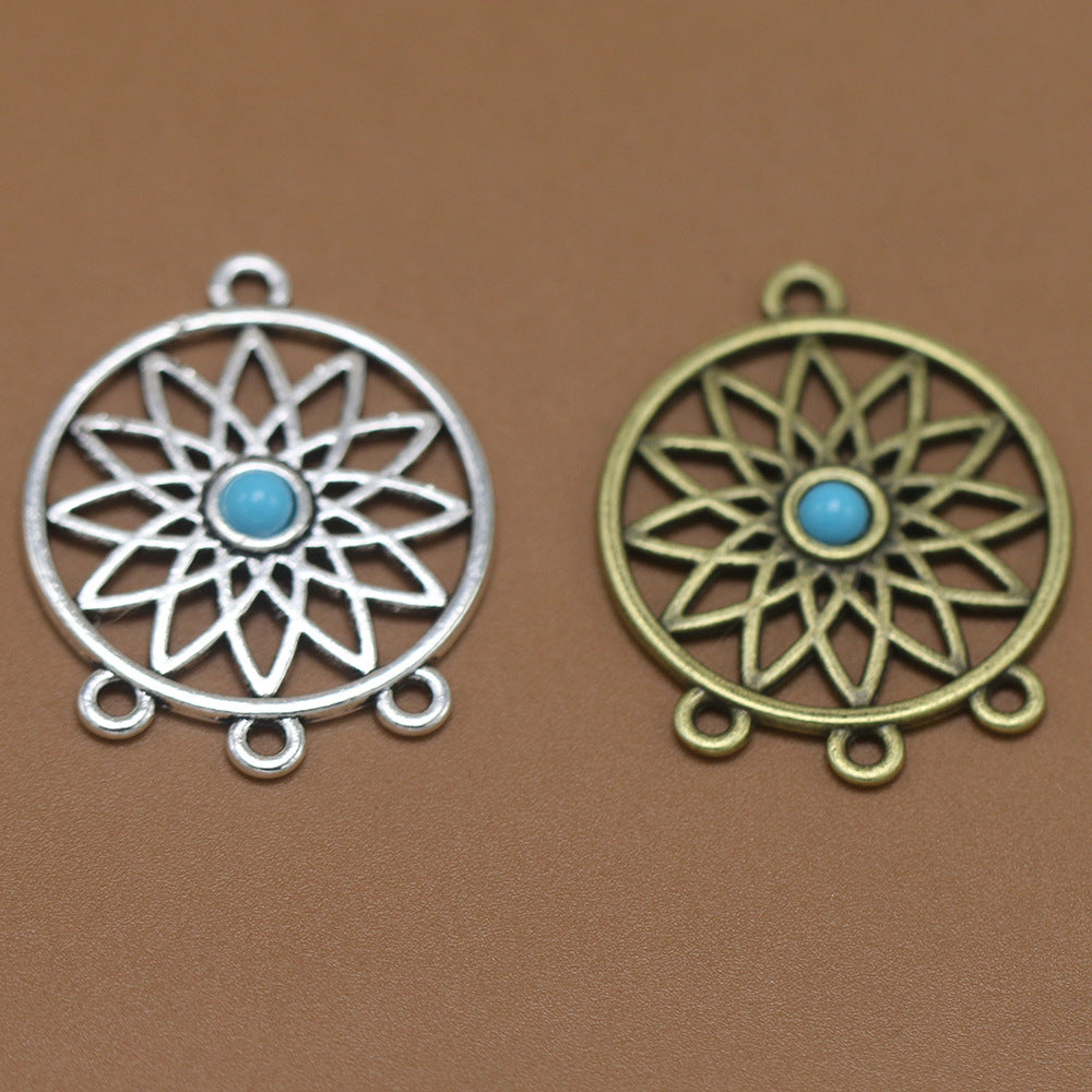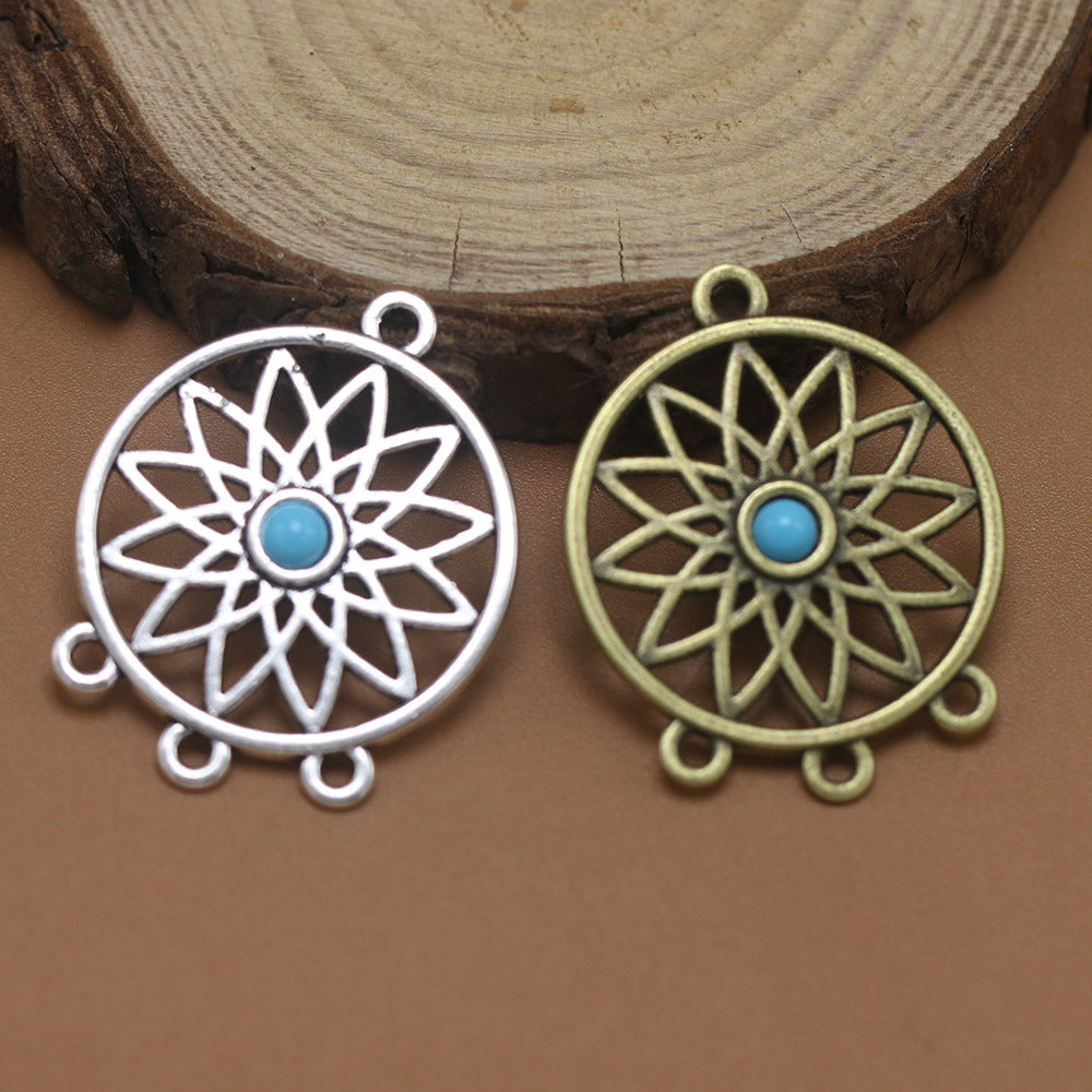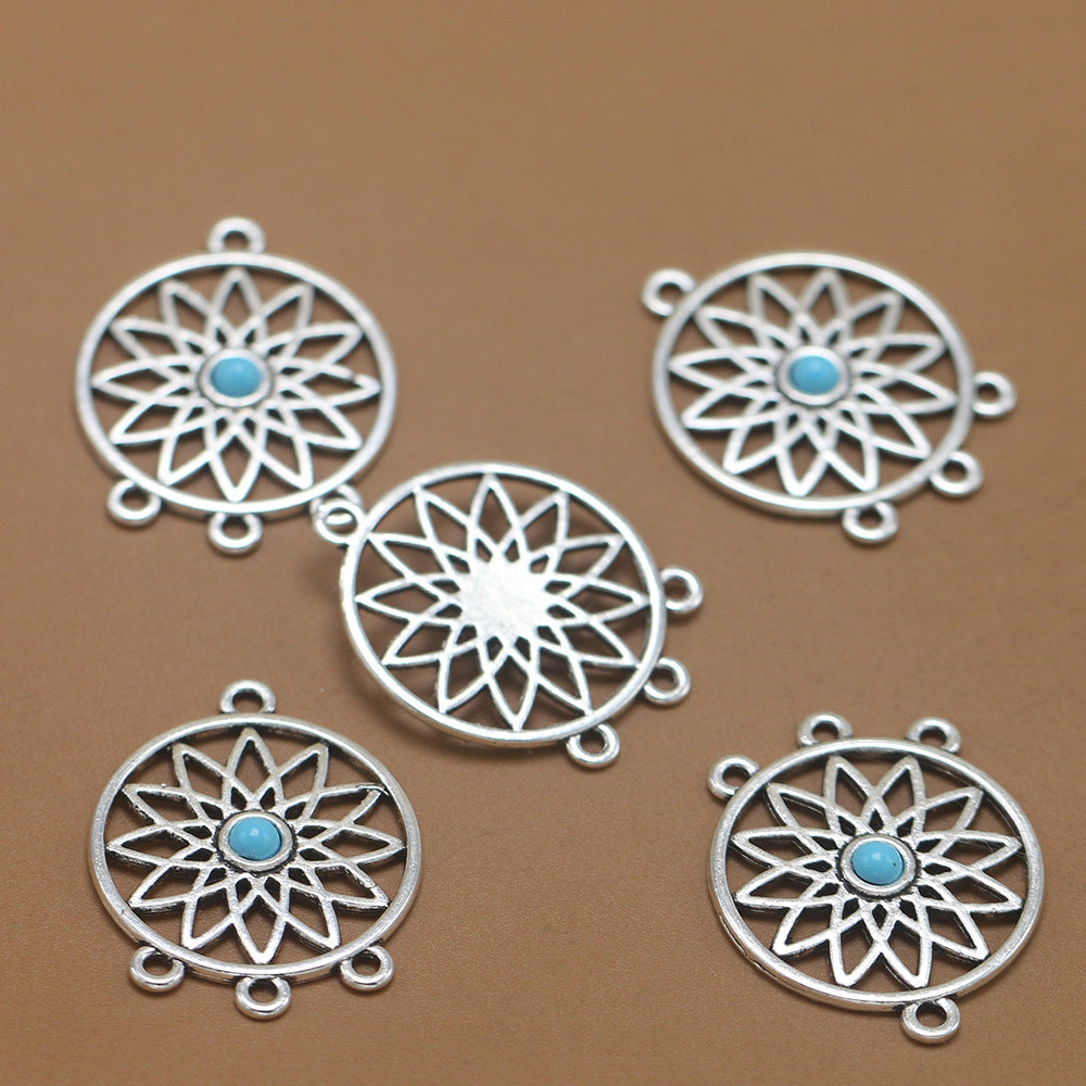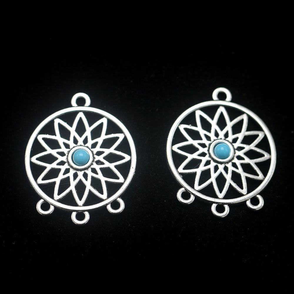 Add a touch of vintage style to your look with these 2pcs retro jewelry accessories featuring a hollow round net design with inlaid turquoise accents.