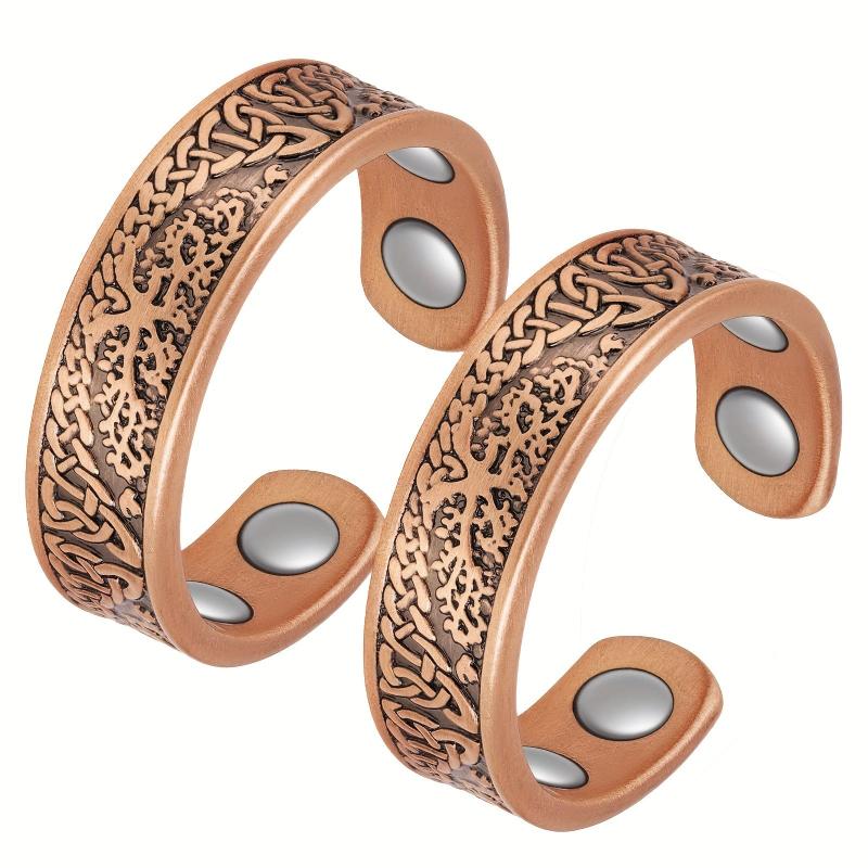 Enhance your style with these adjustable copper rings featuring the Tree of Life design and magnetic properties.