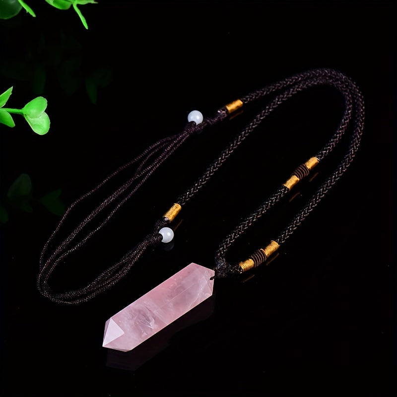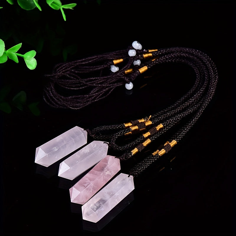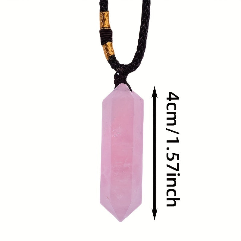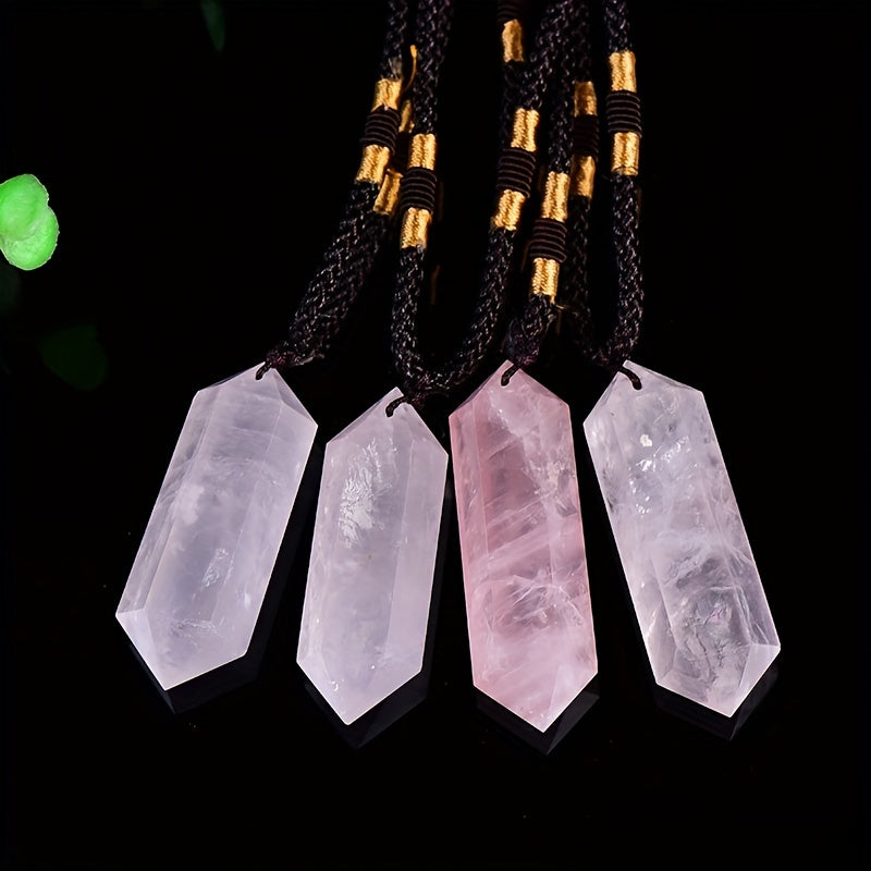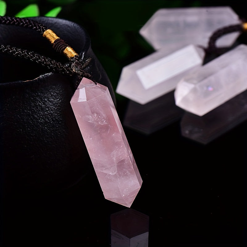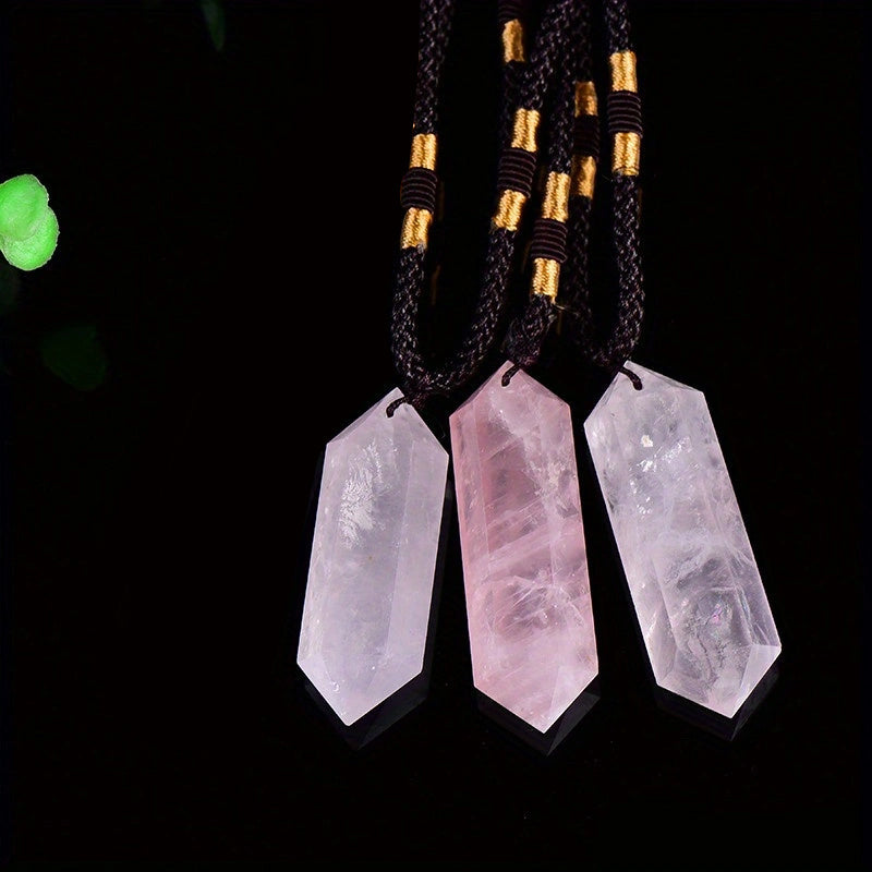 This crystal pendant features a double-pointed hexagon rough stone design with polished finish. It is made from healing crystal and can be used for jewelry making or crystal healing.