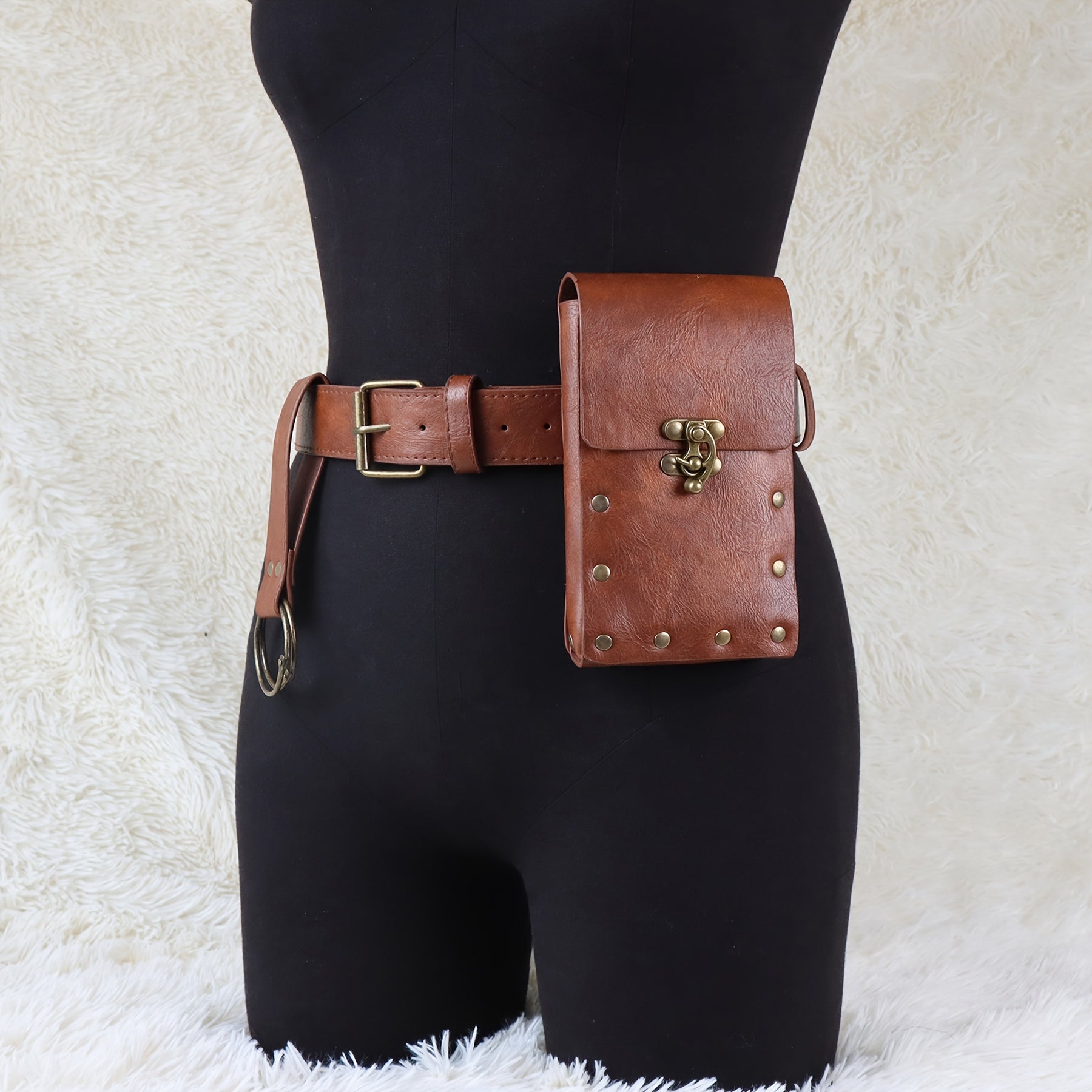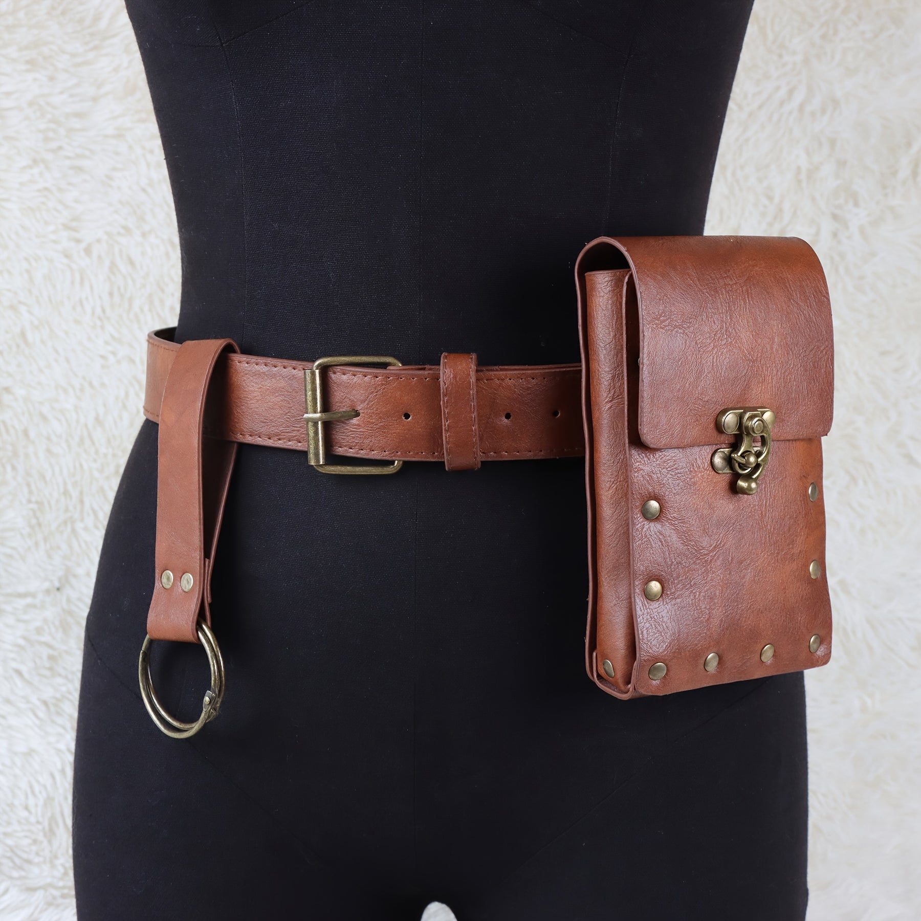 Complete your Renaissance or Viking costume with this 3-piece set including a belt, waist bag, and skirt in vintage style. Made of durable PU leather for an authentic look.