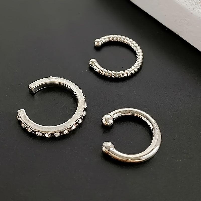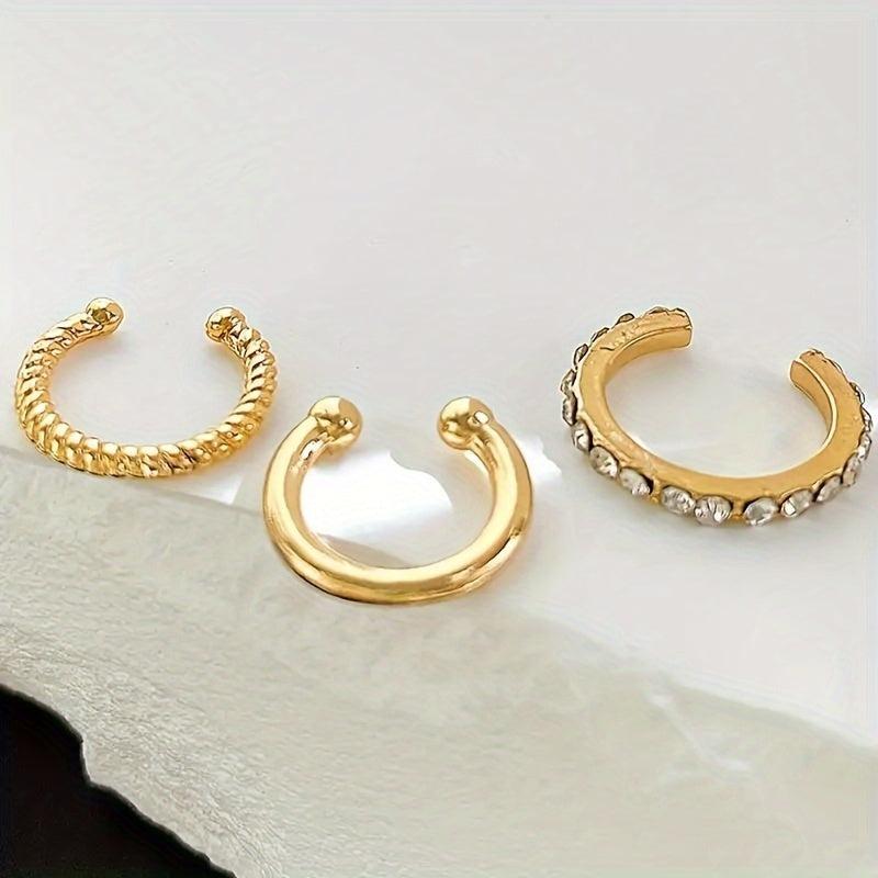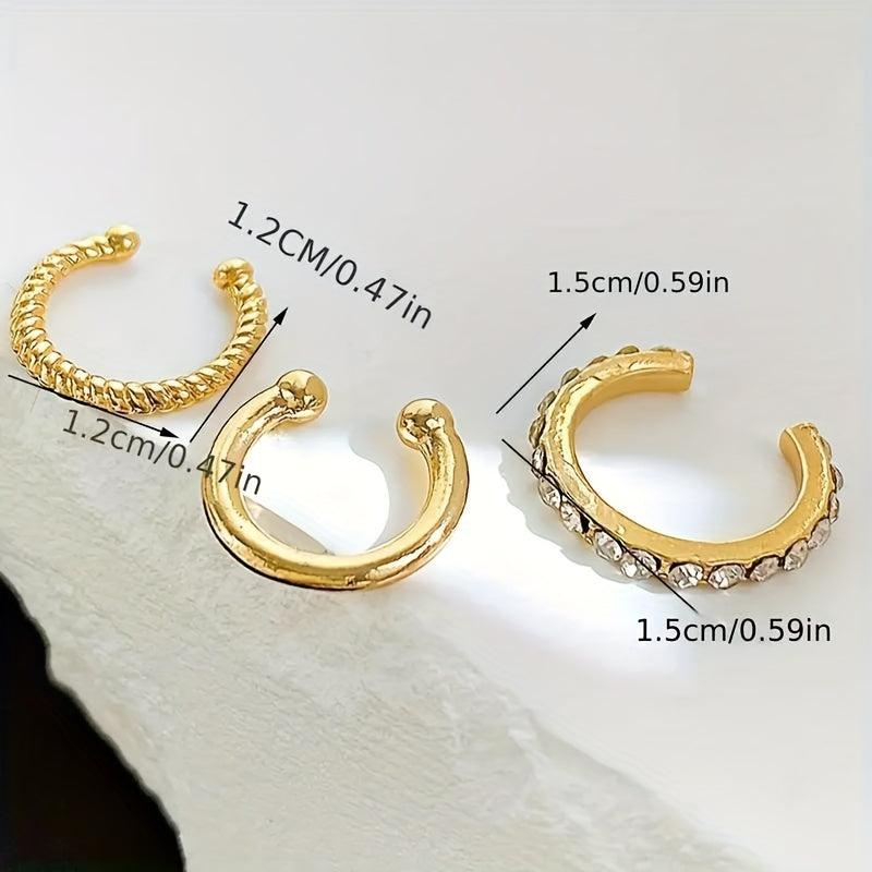Add a touch of sparkle to your look with these stylish ear cuffs featuring dazzling rhinestones. Perfect for everyday wear or evening events, these cuffs come in golden and silvery tones.