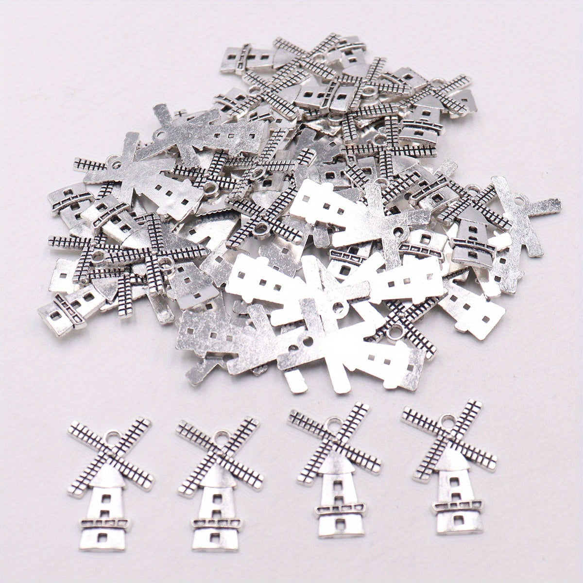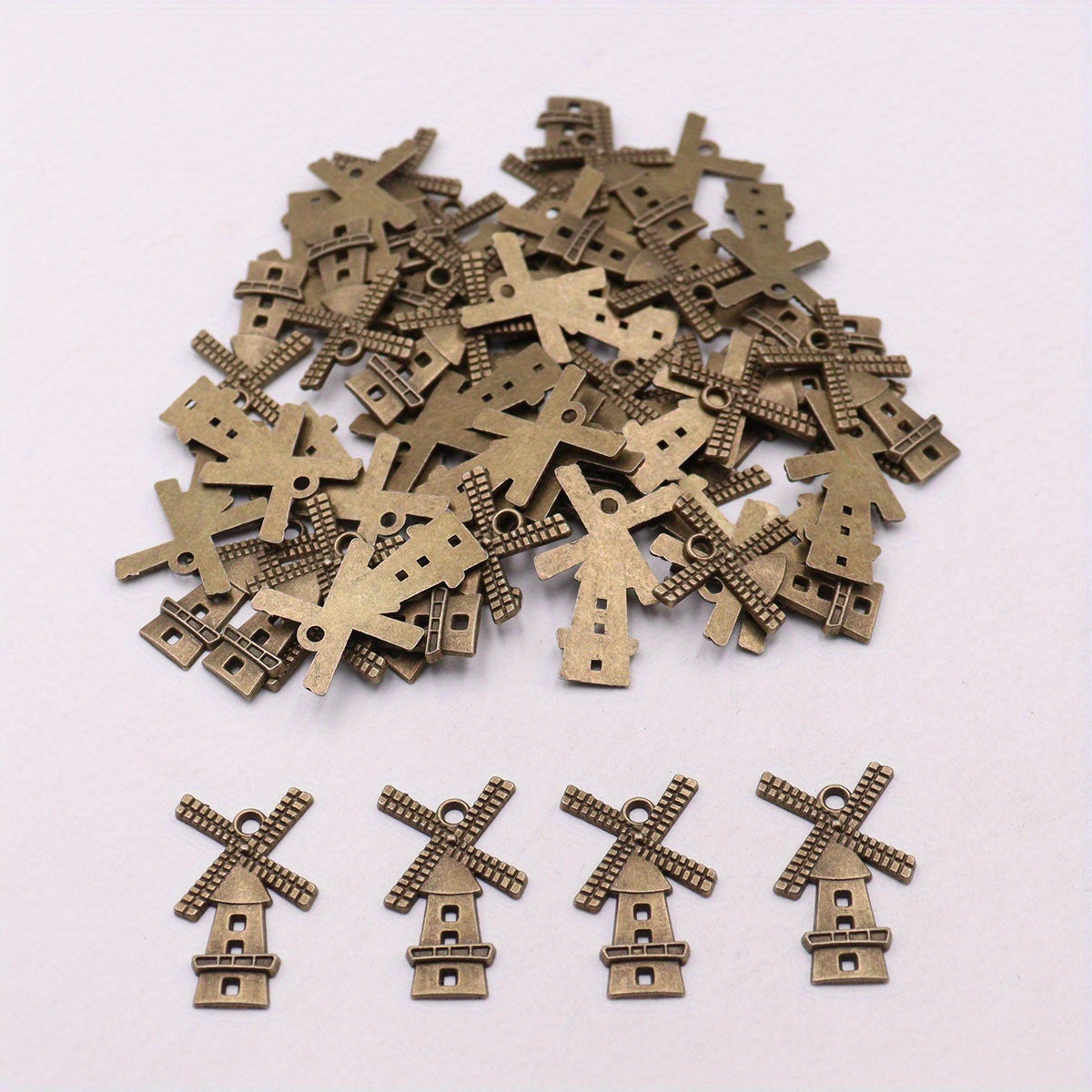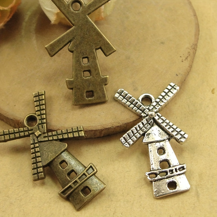 Enhance your jewelry making projects with these vintage windmill alloy pendants. Perfect for art and craft enthusiasts.