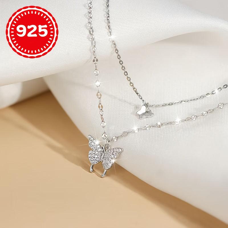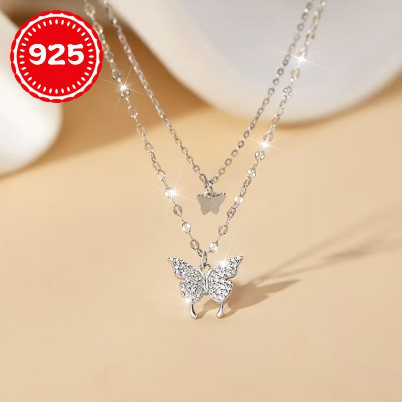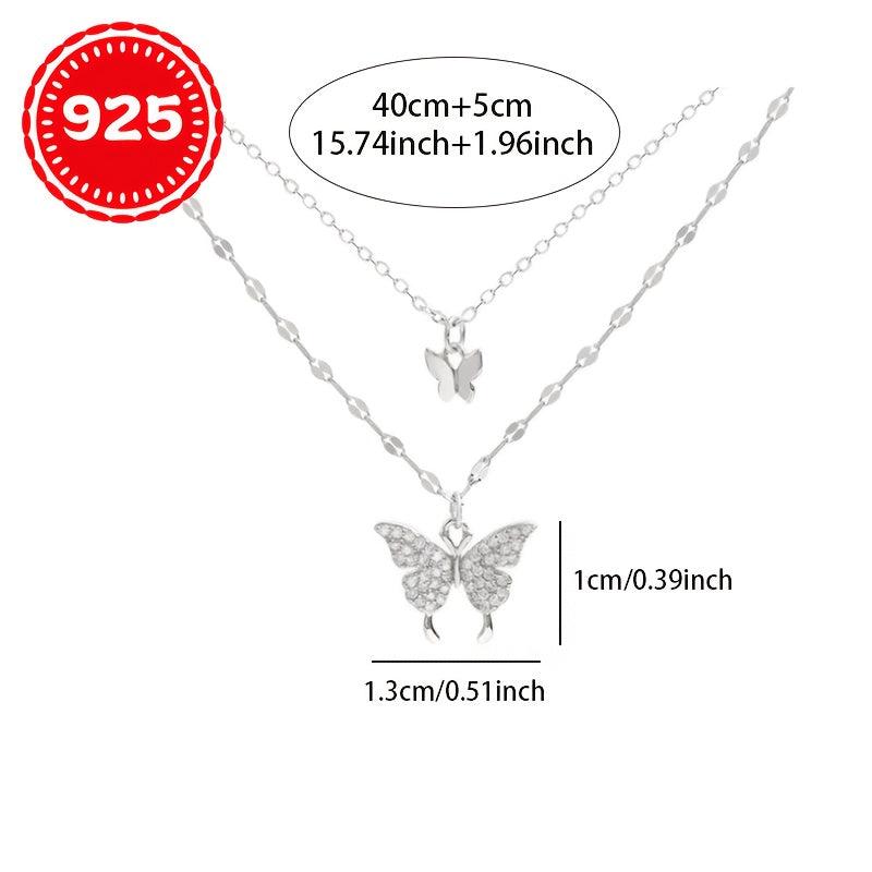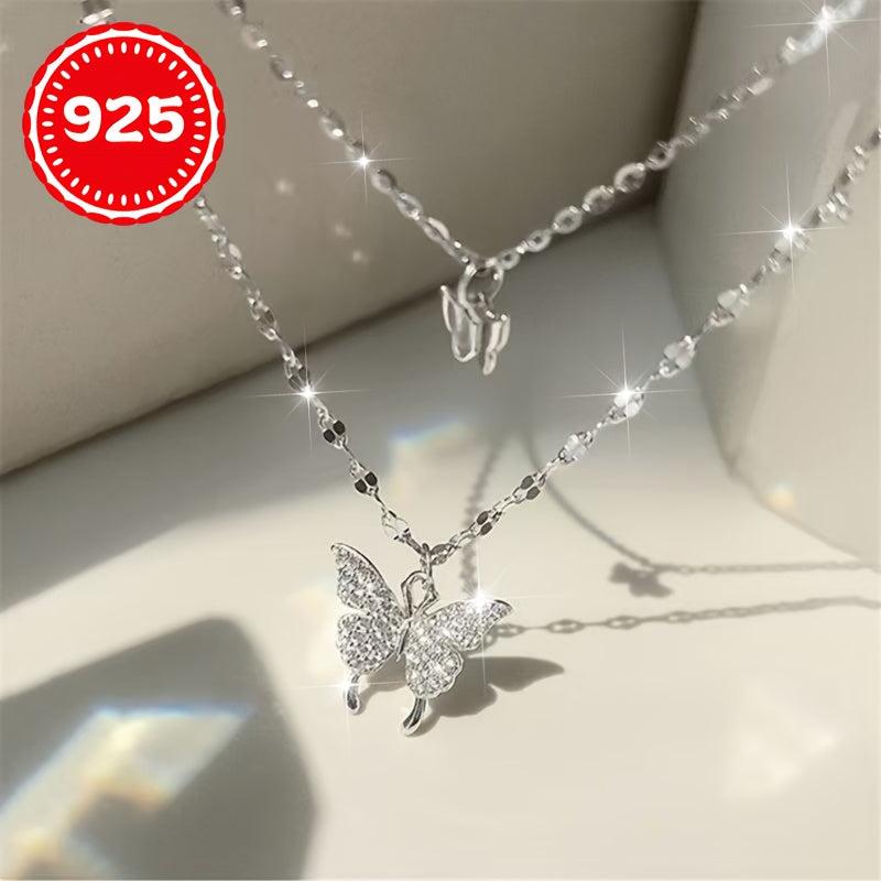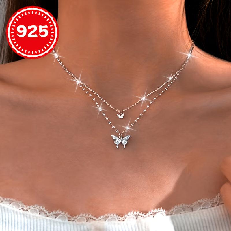 This 925 silver hypoallergenic necklace features a single layer butterfly double strand design, making it a unique gift for couples and BFFs. Suitable for every occasion.