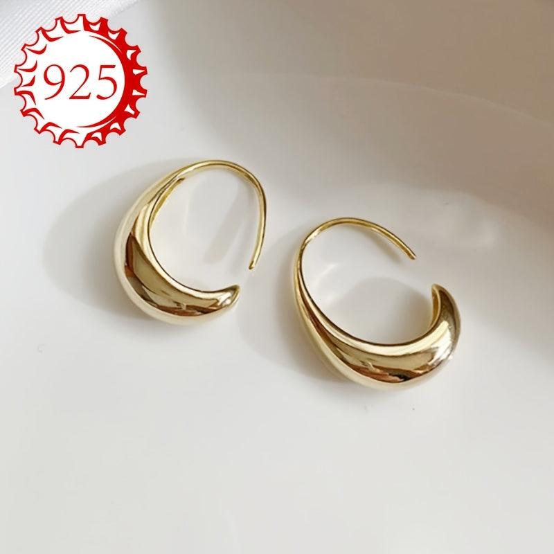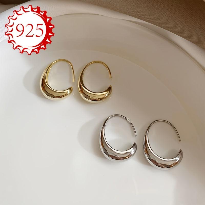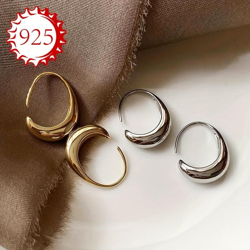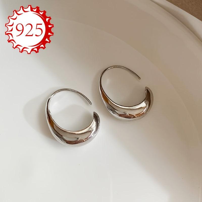 This pair of 925 silver hoop earrings features a sleek and unique curved design, perfect for versatile elegance. Ideal for couples, friends, or any special occasion.