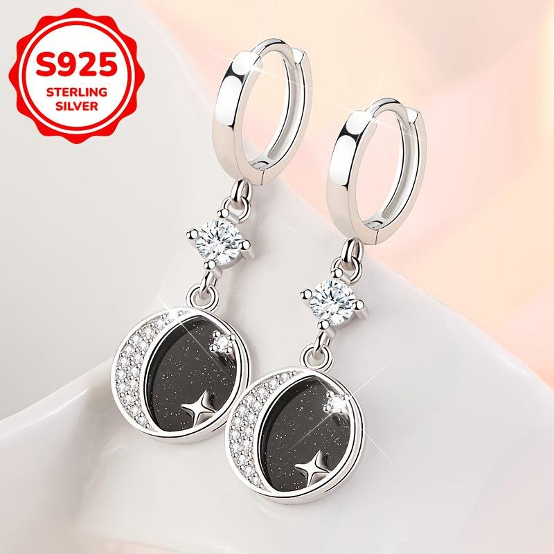 Add a touch of celestial charm to your look with these 925 silver starry sky earrings. These lightweight earrings are hypoallergenic and perfect for any occasion.