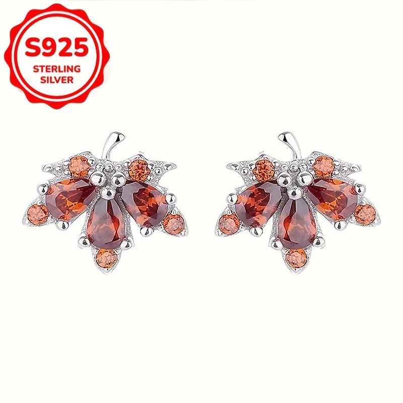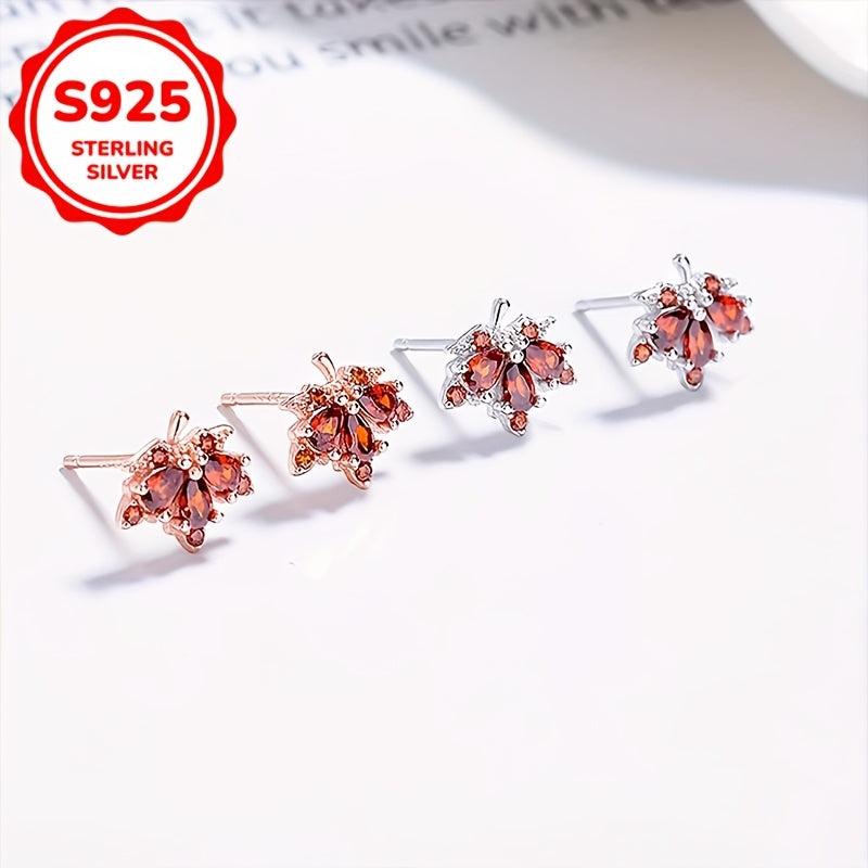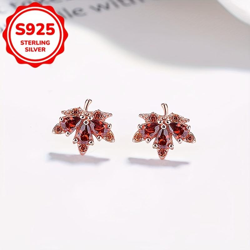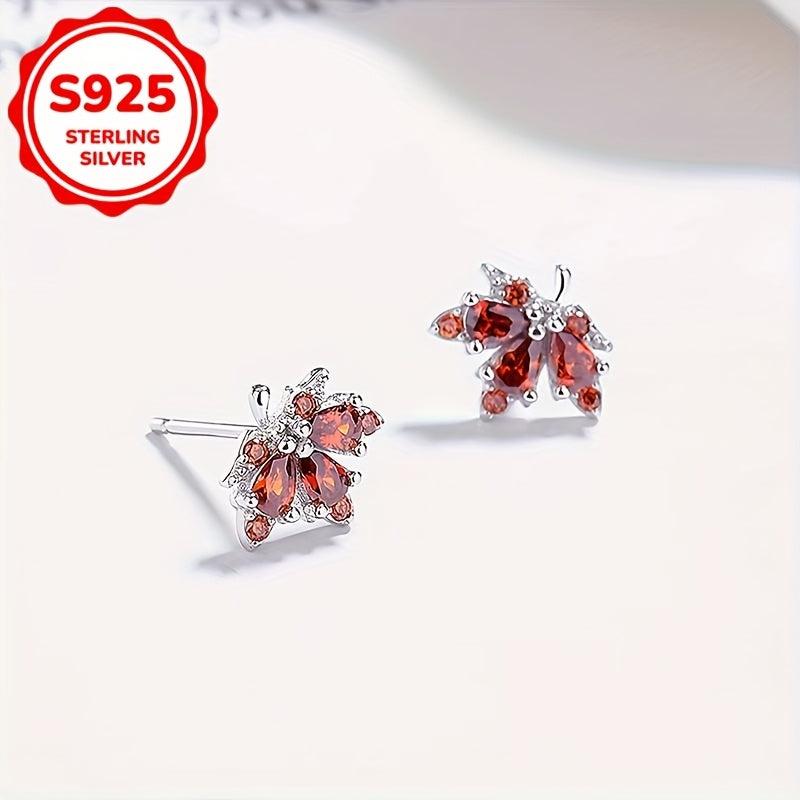 Add a touch of elegance to your look with these maple leaf stud earrings featuring red rhinestones. Made of high-quality 925 sterling silver, these earrings are perfect for daily wear.