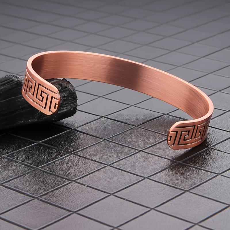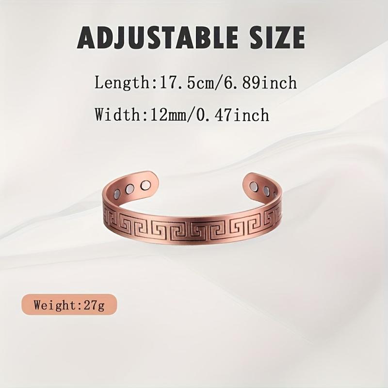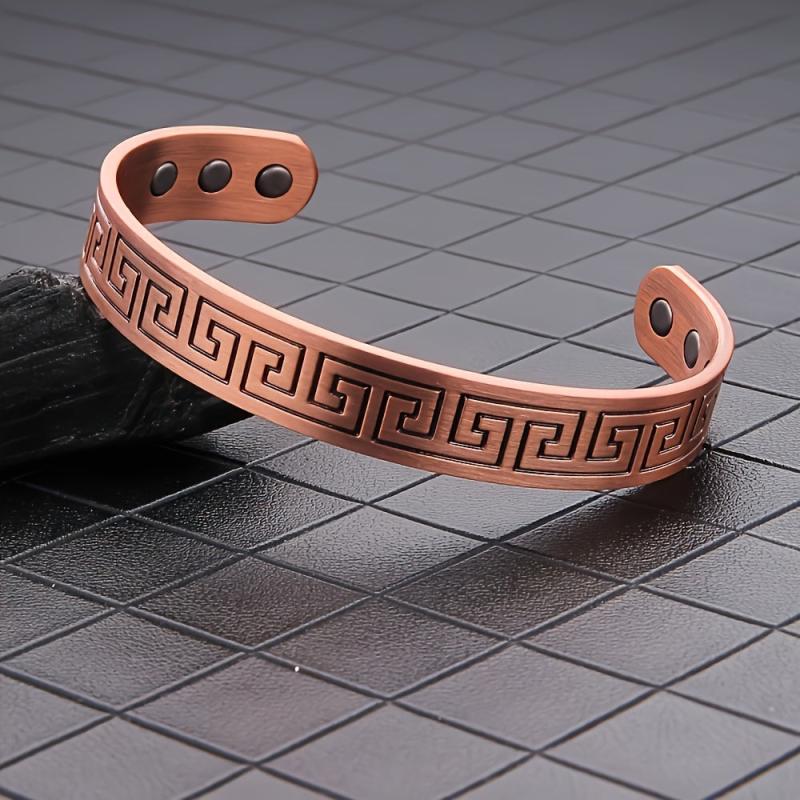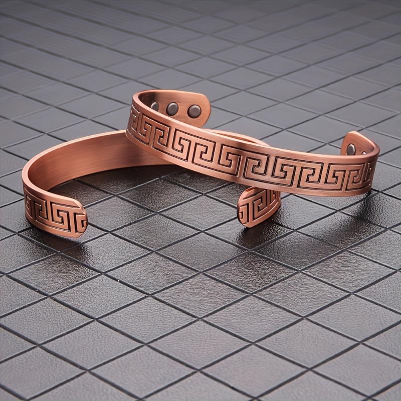 This vintage-inspired copper magnetic bracelet features an intricate geometric pattern, making it an ideal gift for family and friends. The minimalist design adds a touch of elegance to any outfit.