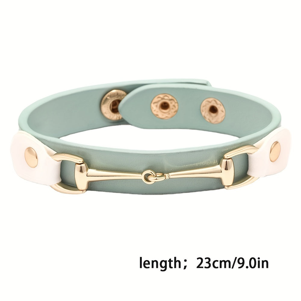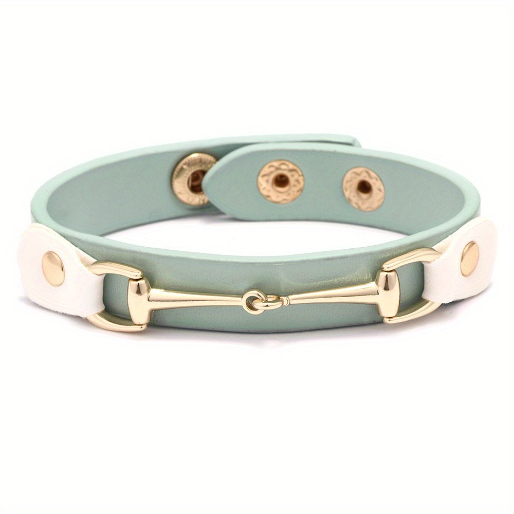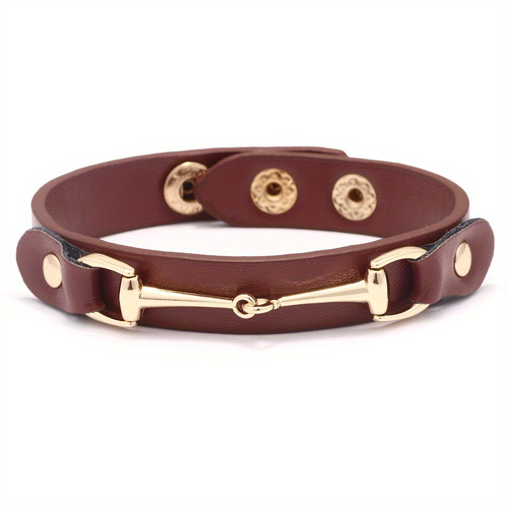 This stylish bracelet features a horseshoe buckle design that is perfect for men and women. It is adjustable to fit different wrist sizes.