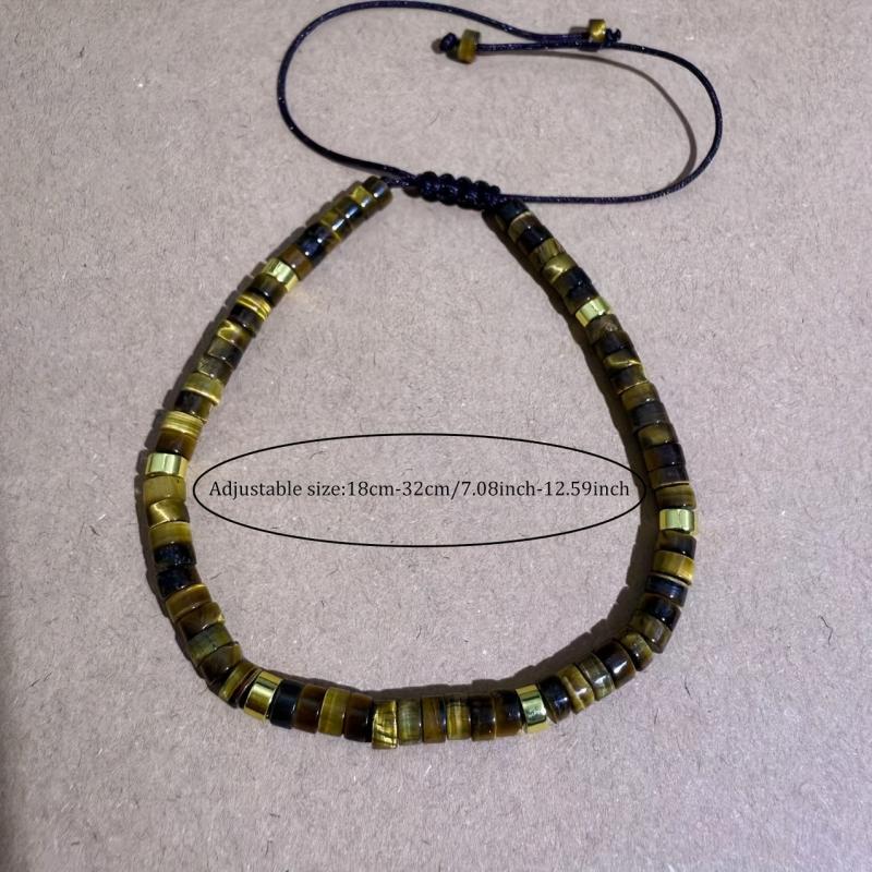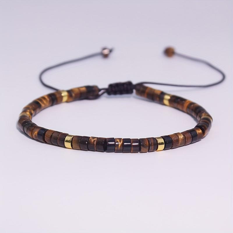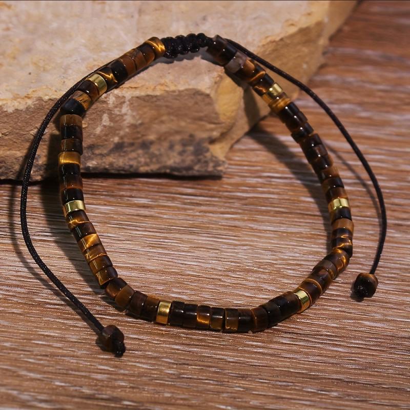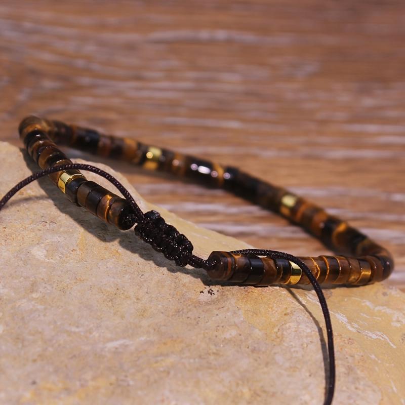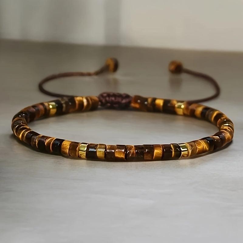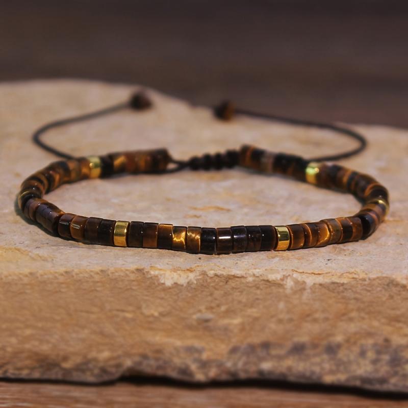 This dainty bracelet features Tiger's Eye beads in a minimalist design. The 2x4mm natural stones provide a touch of bohemian style and protection. Perfect as a gift for her or him.