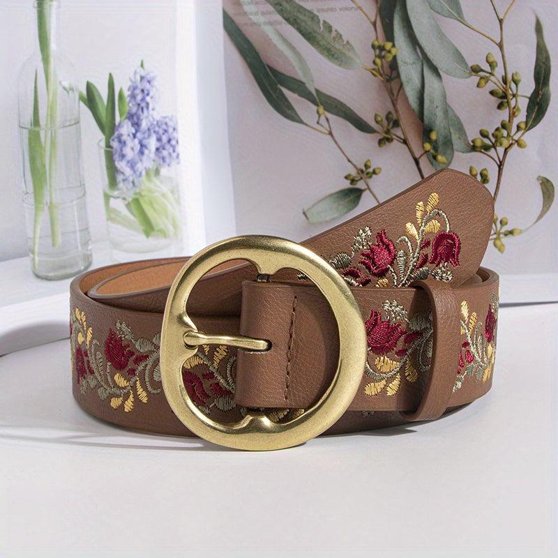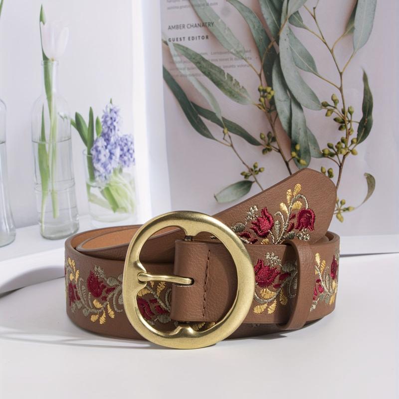 Enhance your jeans or pants with this stylish flower embroidery boho belt made of PU leather. Perfect for adding a touch of Western flair to your outfit.