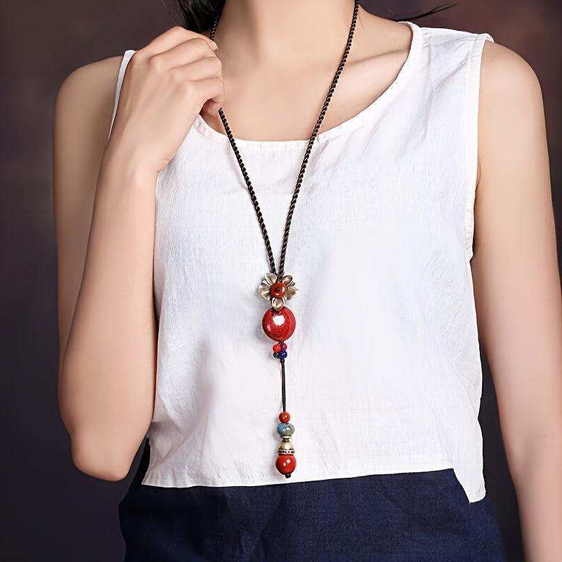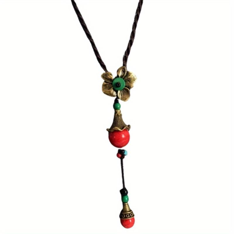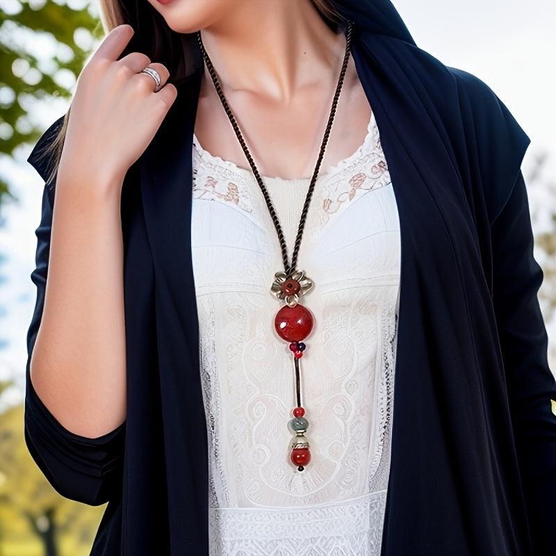 Elevate your style with this vintage boho Y necklace featuring a stunning garnet stone pendant. This versatile piece is perfect for daily wear or as a thoughtful gift for special occasions. Accessorize your sweaters effortlessly with this chic jewelry.