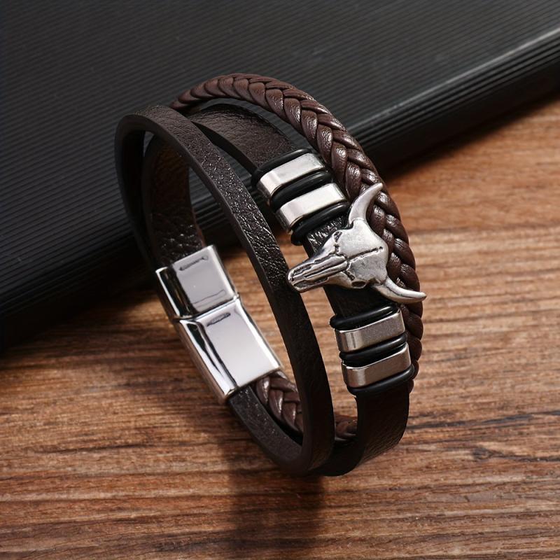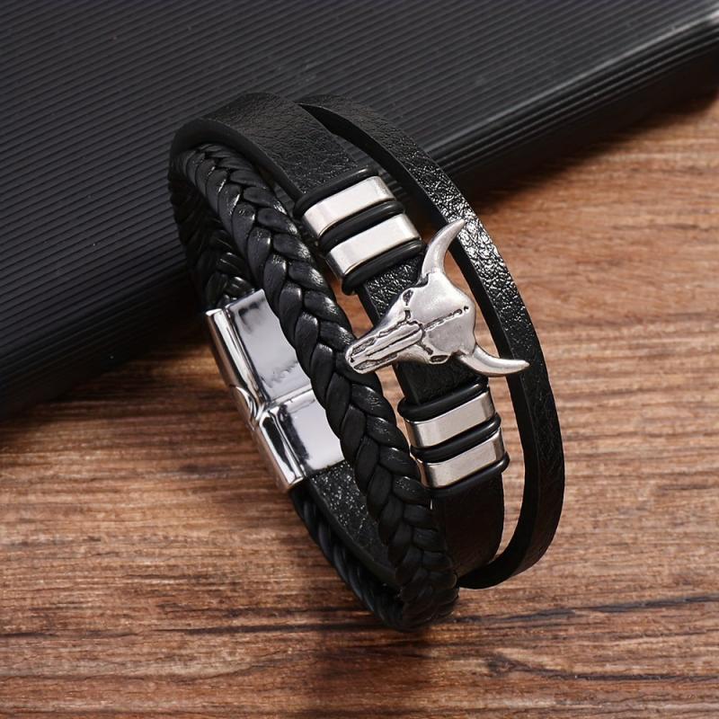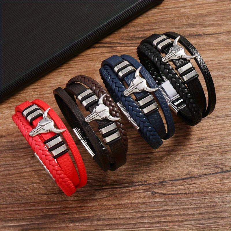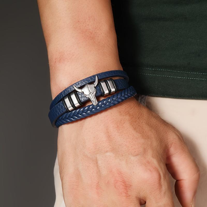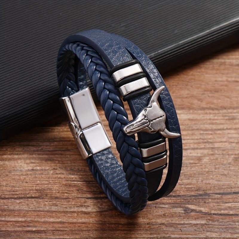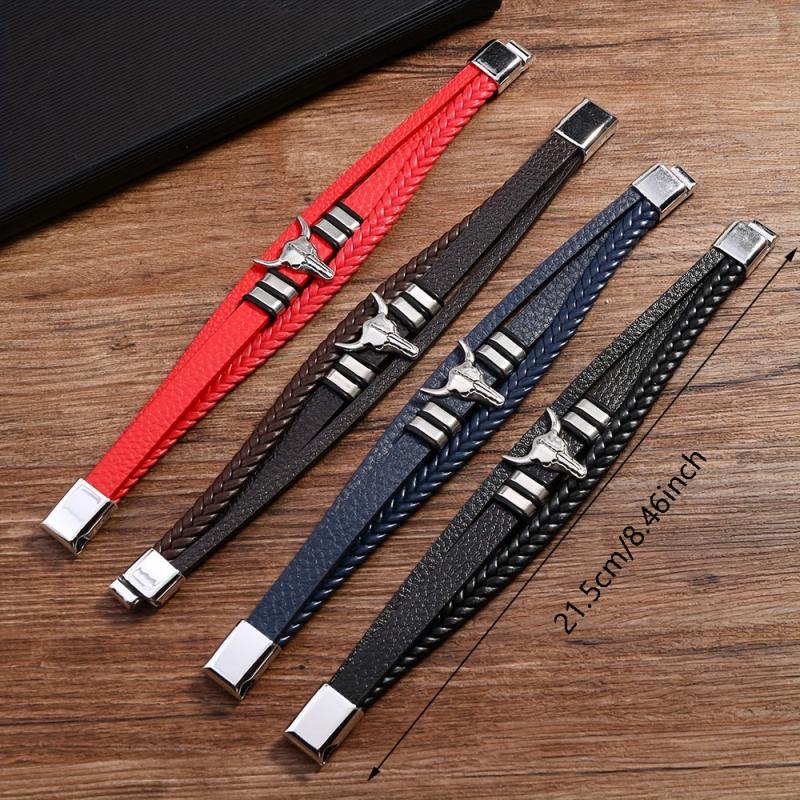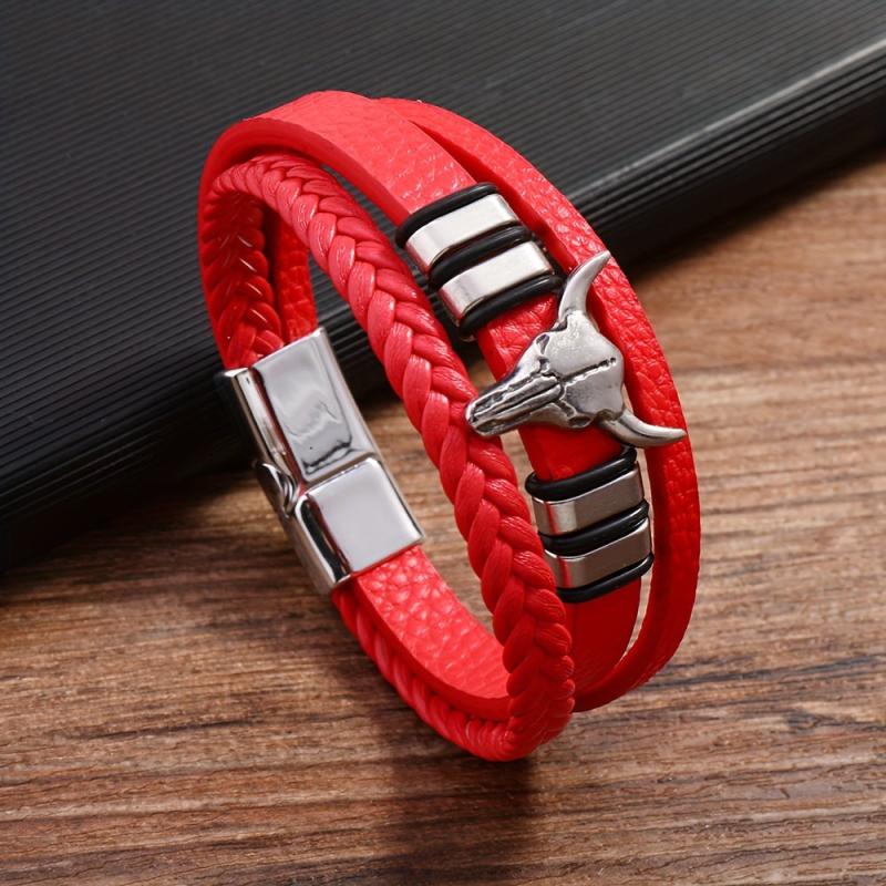 Add a touch of punk style to your look with this faux leather bracelet featuring a bull head charm. Perfect for sports and outdoor activities. Made with a stylish July birthstone accent.