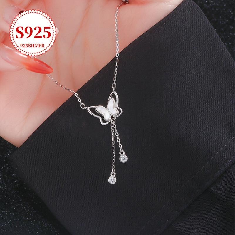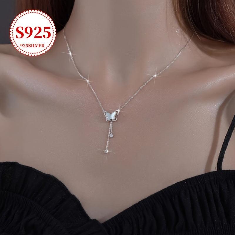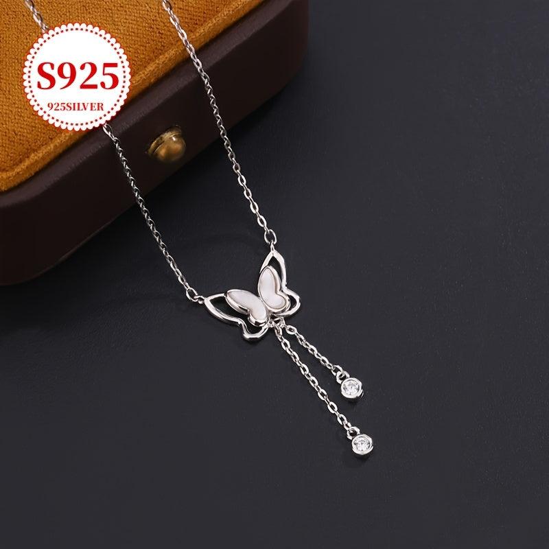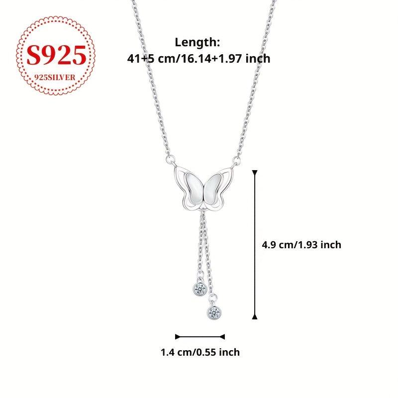 This lightweight butterfly pendant necklace features cubic zirconia accents on a low allergy silver chain. Perfect for women's neckline and an ideal gift for Valentine's Day.