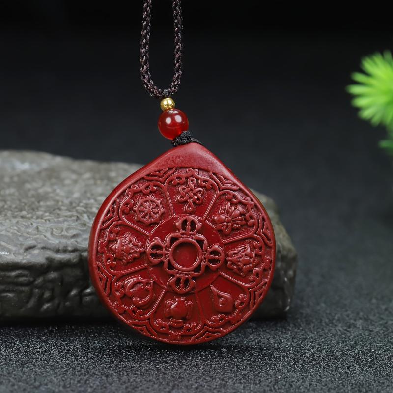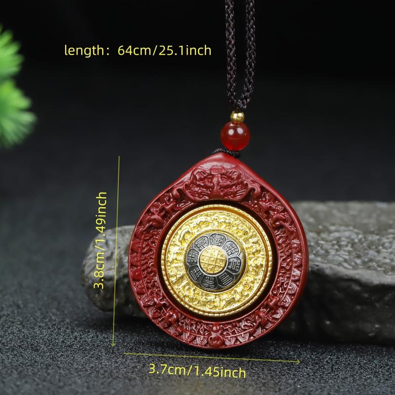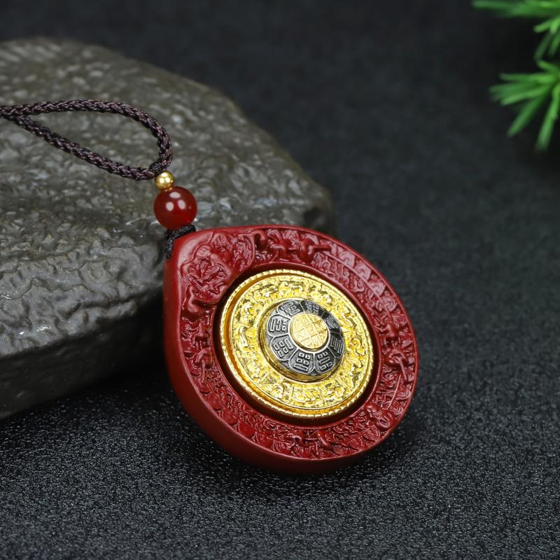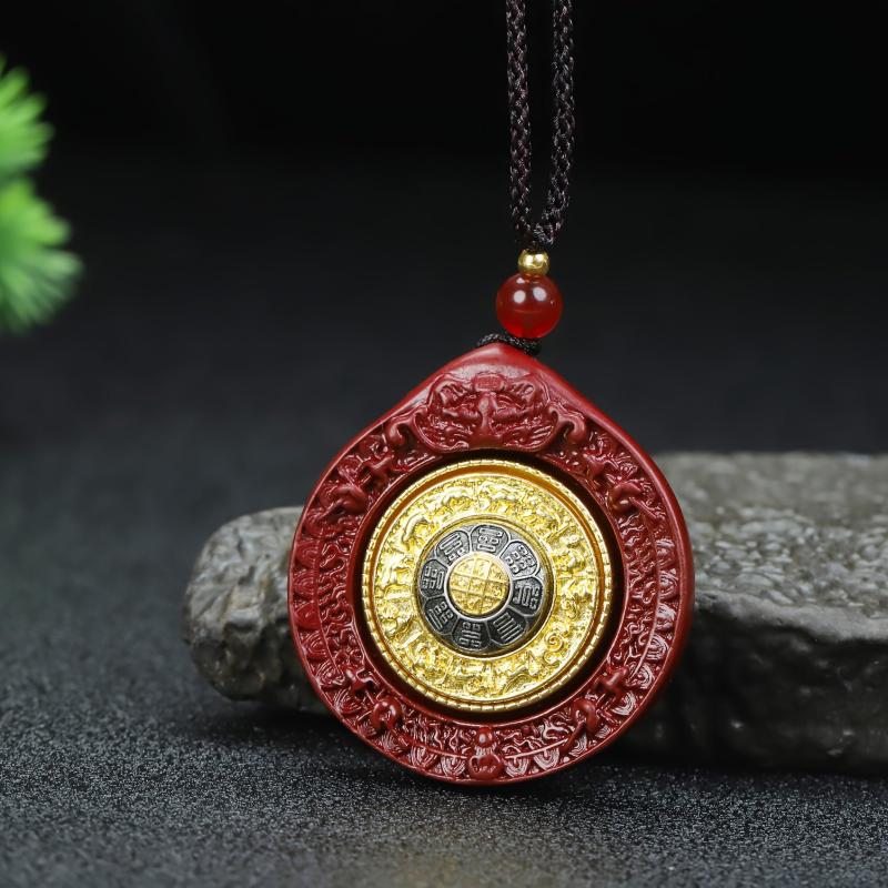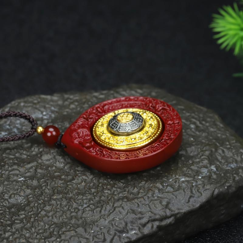 This pendant ornament features high content cinnabar with a unique design of Nine Palaces & Eight Trigrams. It is suitable for both men and women and can be worn as a birth year pendant.
