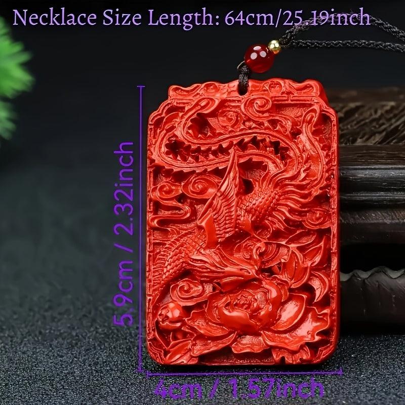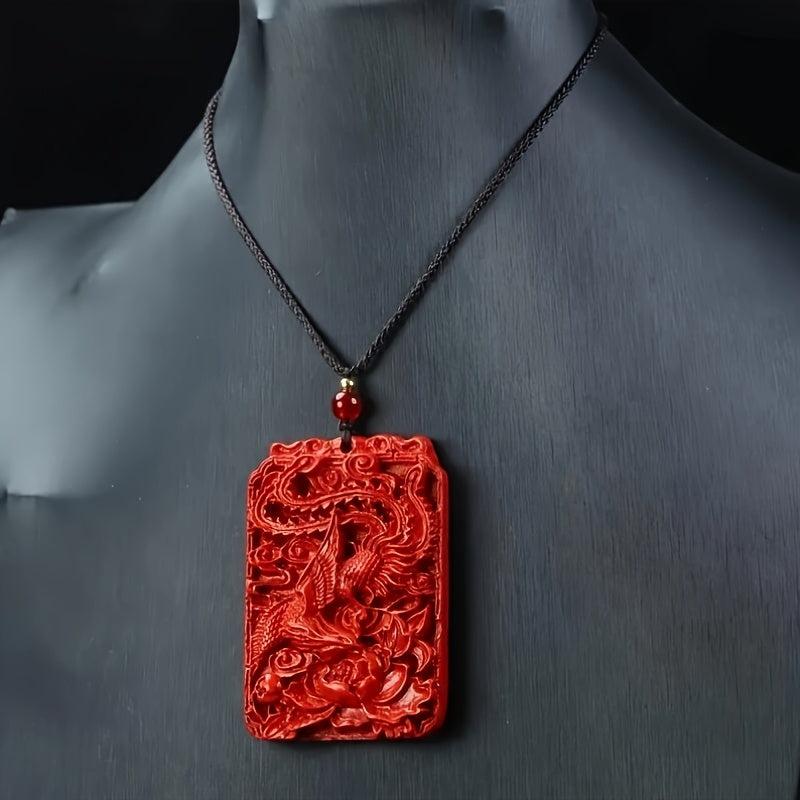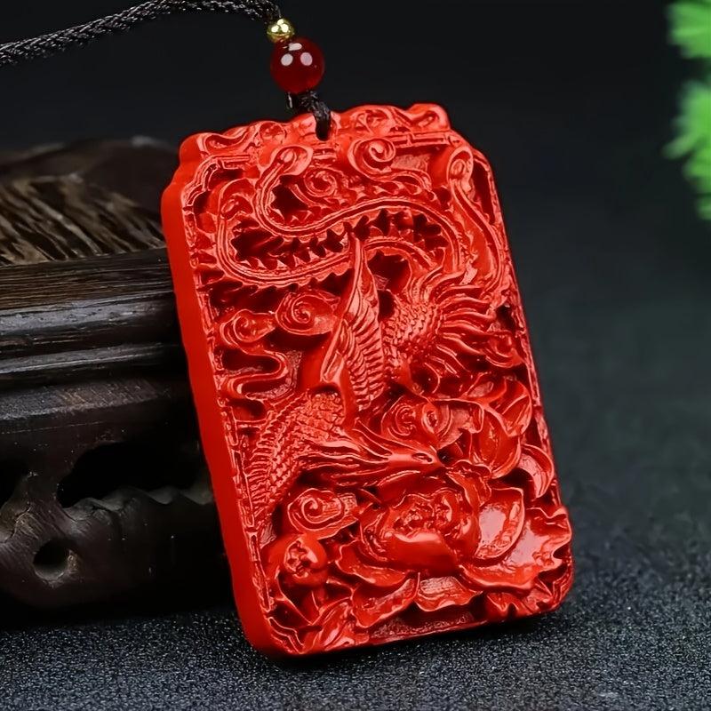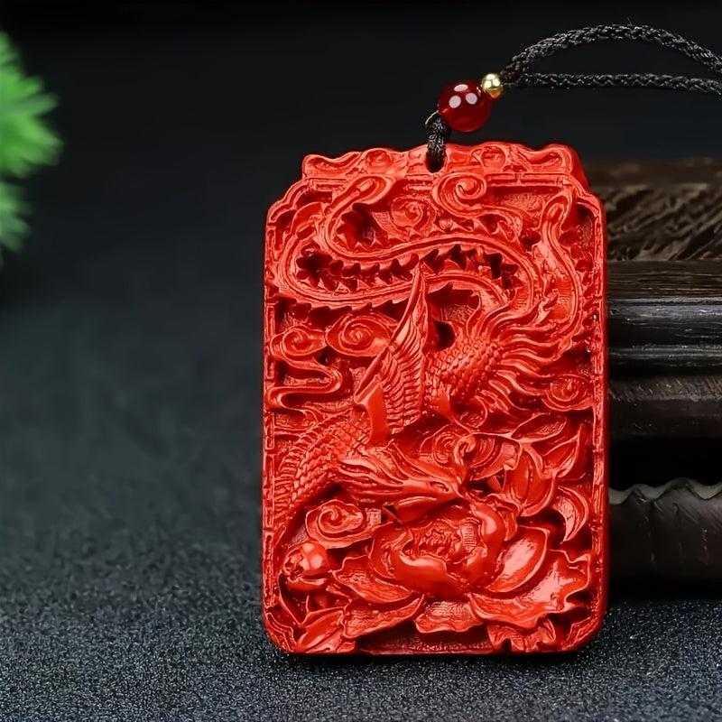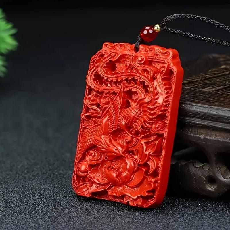Exquisite cinnabar stone pendant featuring a detailed dragon carving, suitable for both men and women as a stylish everyday accessory.