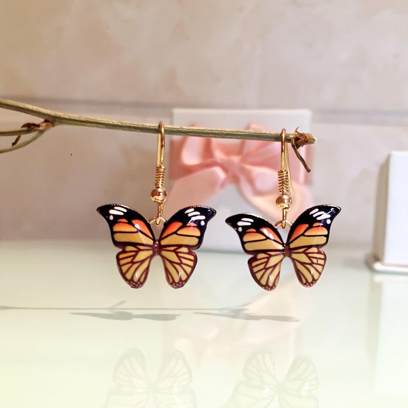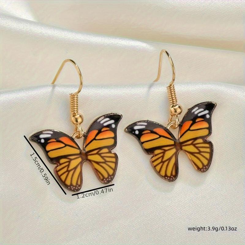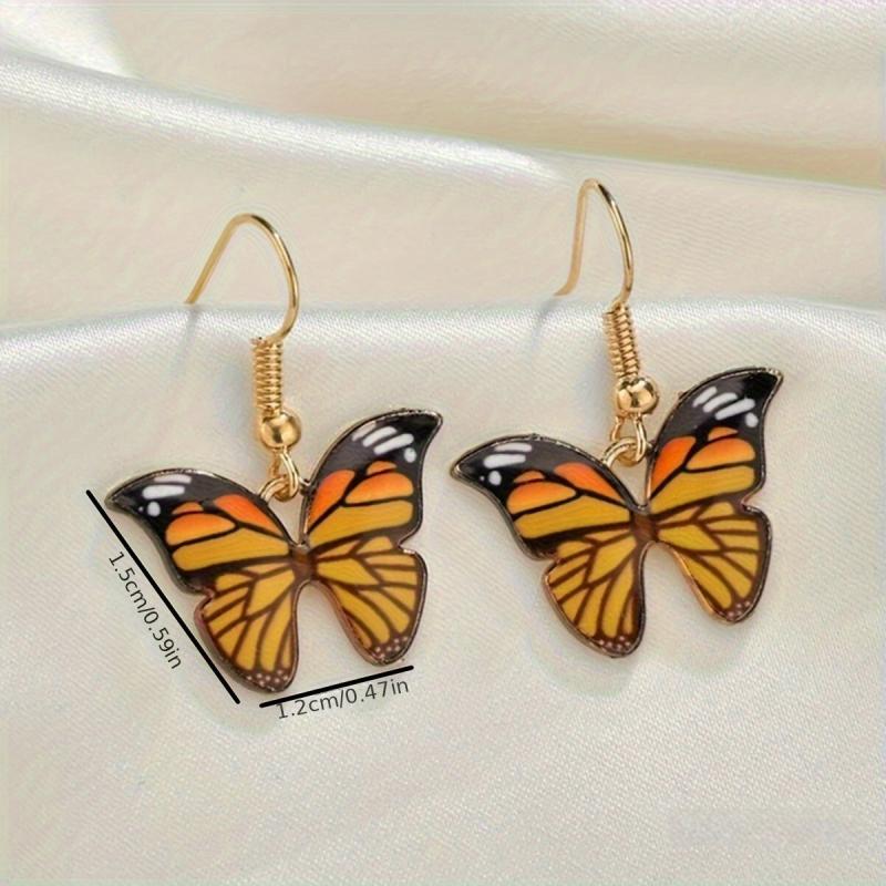Add a touch of elegance to your outfit with these colorful butterfly earrings. Made with high-quality alloy, these earrings feature a beautiful dropping butterfly design that will elevate your style.
