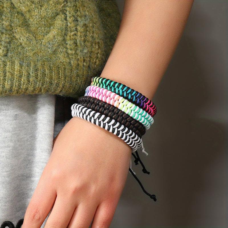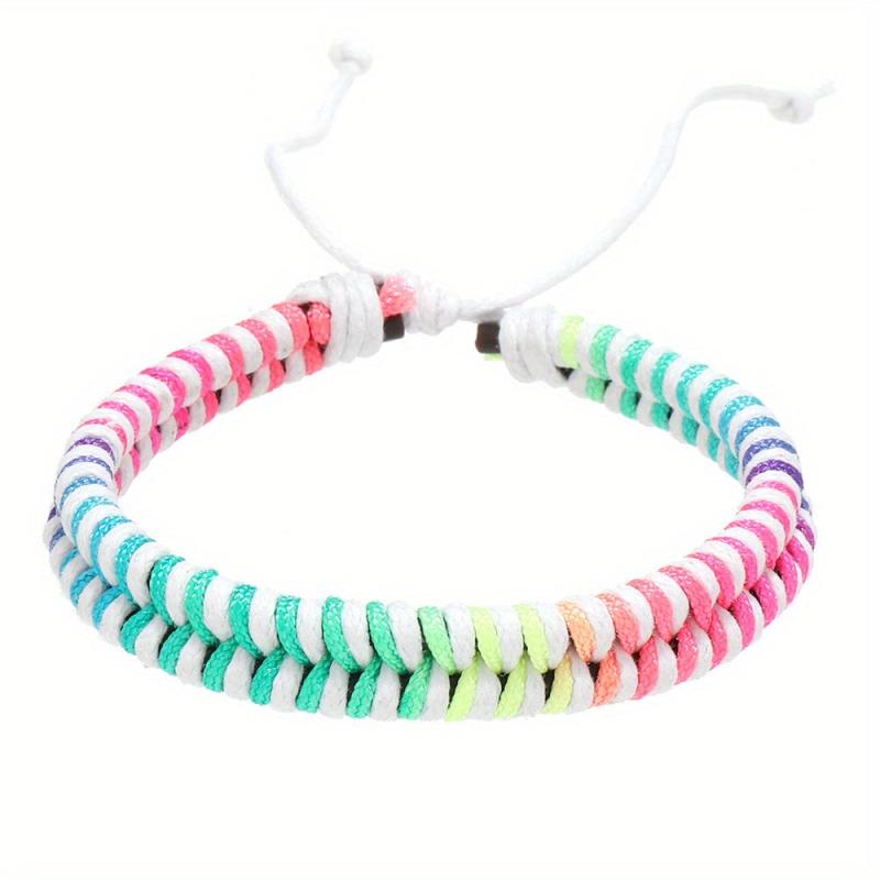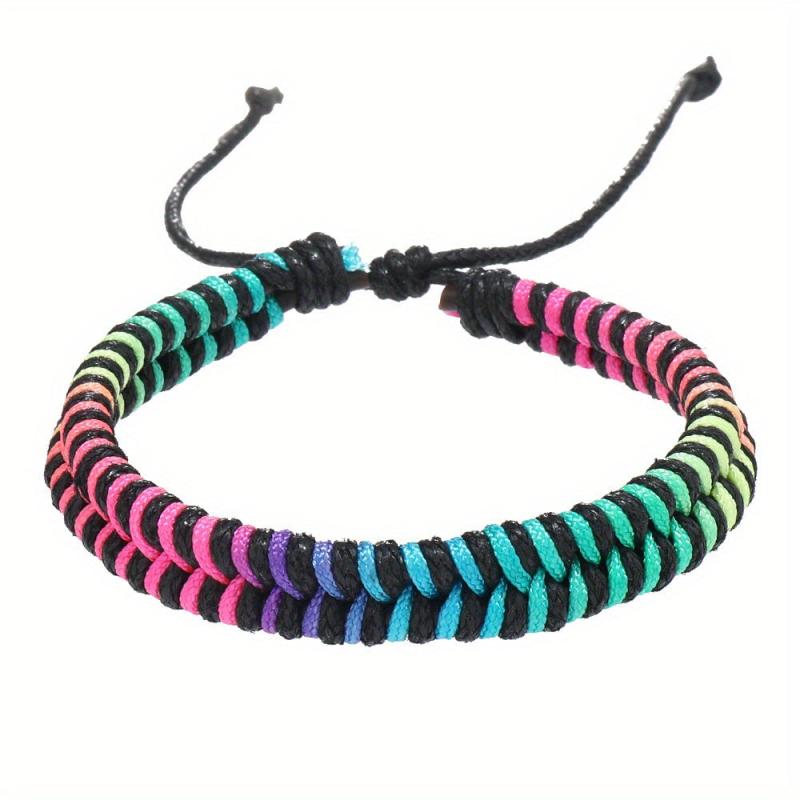 This colorful Japanese woven rope bracelet features a retro design and is perfect as a gift for her. Can be stacked with other bracelets for a trendy look.