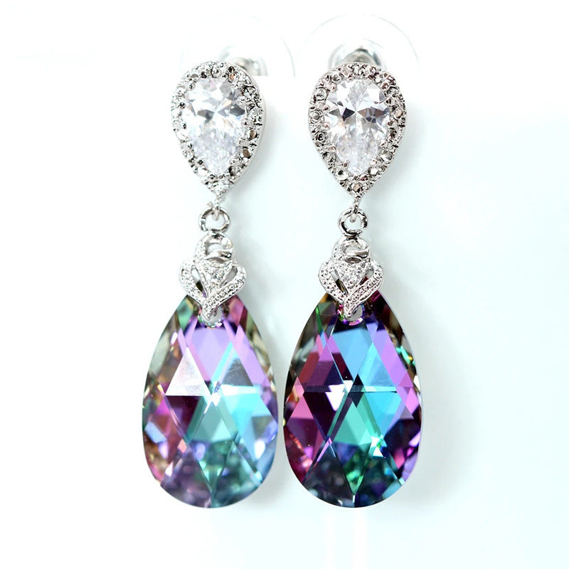 Colorful Zircon Pear Drop Earrings Women's Accessories