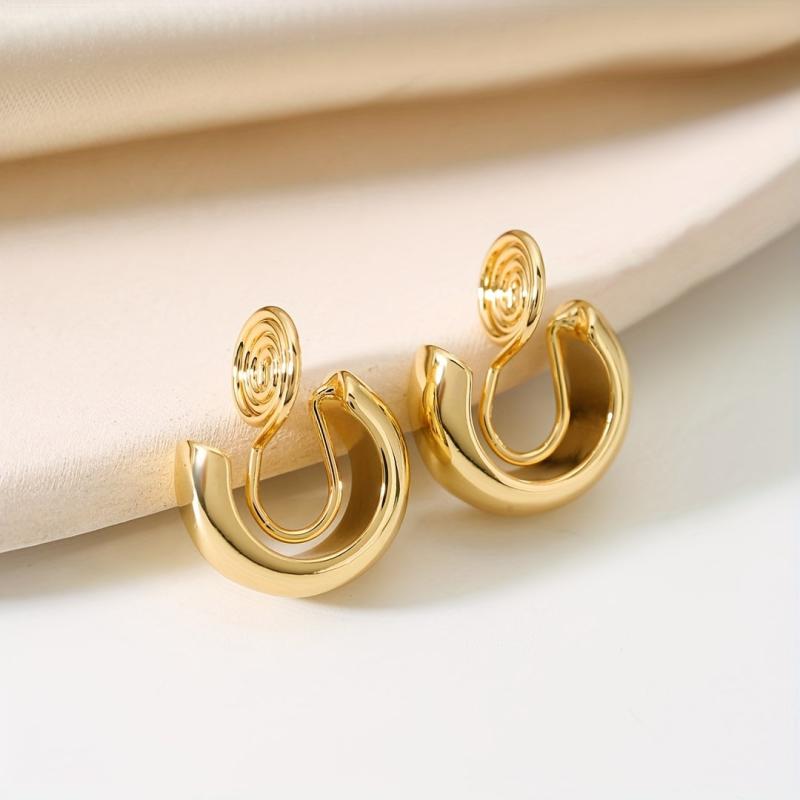 Get this pair of copper clip-on earrings that require no piercing. The smooth metal finish makes them ideal for daily wear, parties, and weddings. Hypoallergenic and secure clip design.