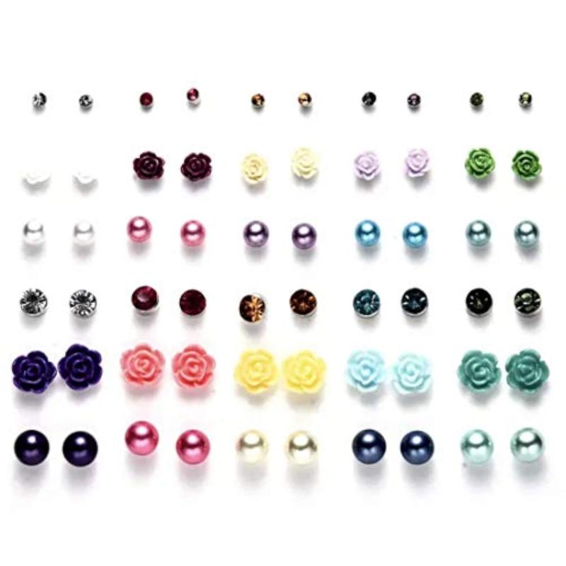 Elevate your style with these multicolour non-precious metal base metal stud earrings featuring crystal and pearl accents in a floral design. Perfect for adding a touch of elegance to any outfit.
