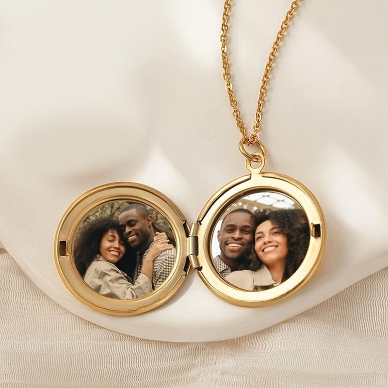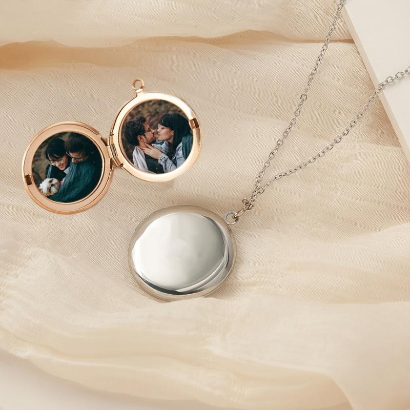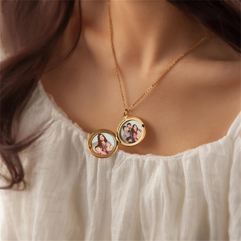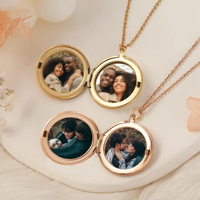 Surprise your mother or loved ones with these custom photo box necklace featuring two round pendant chain necklaces. Perfect gift for Christmas or any occasion.