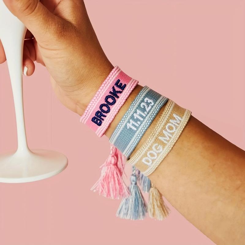 Create a special gift with personalized embroidered friendship bracelets. These bracelets are perfect for expressing your unique bond with someone special.