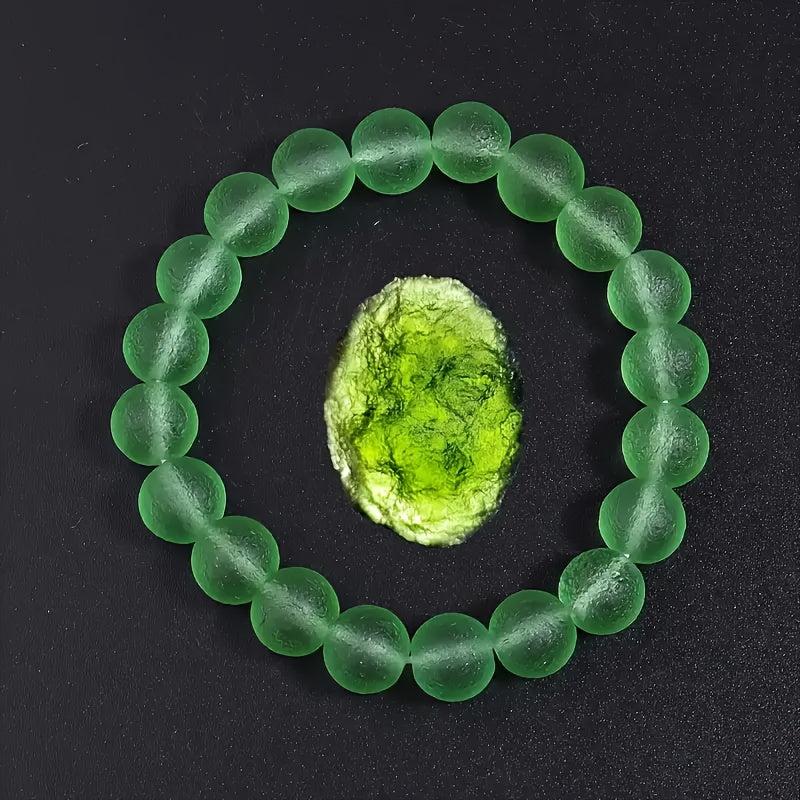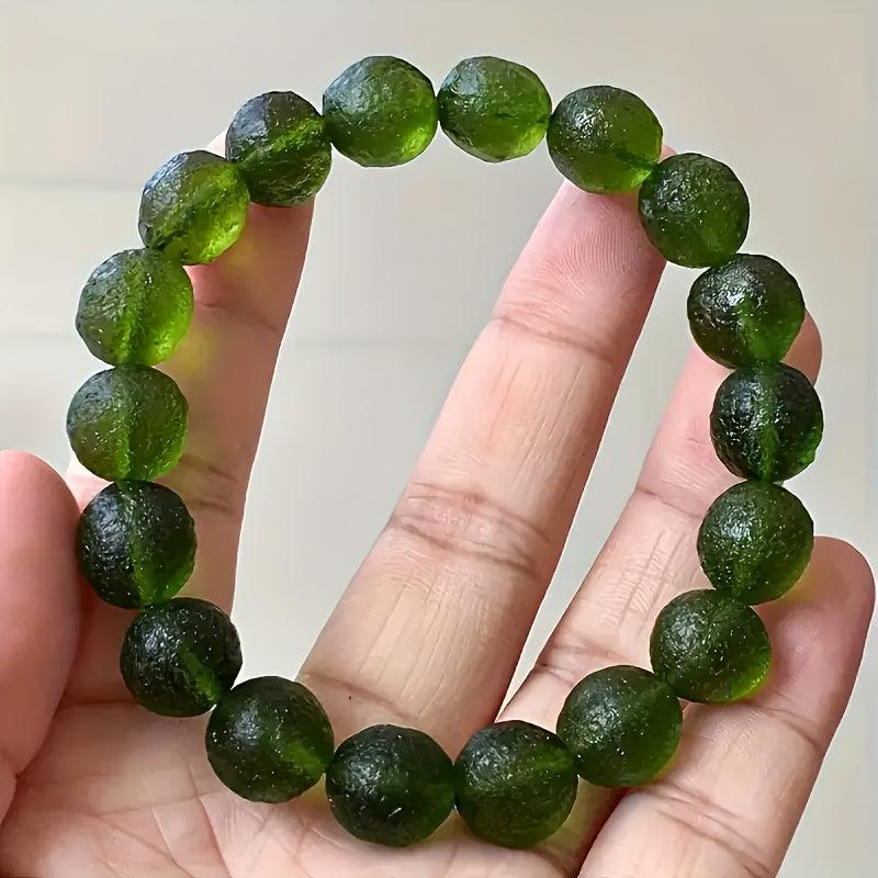 Elevate your style with this lucky Czech Meteorite bracelet featuring sparkling green crystal and natural gemstones. This bracelet is a durable accessory perfect for daily wear.