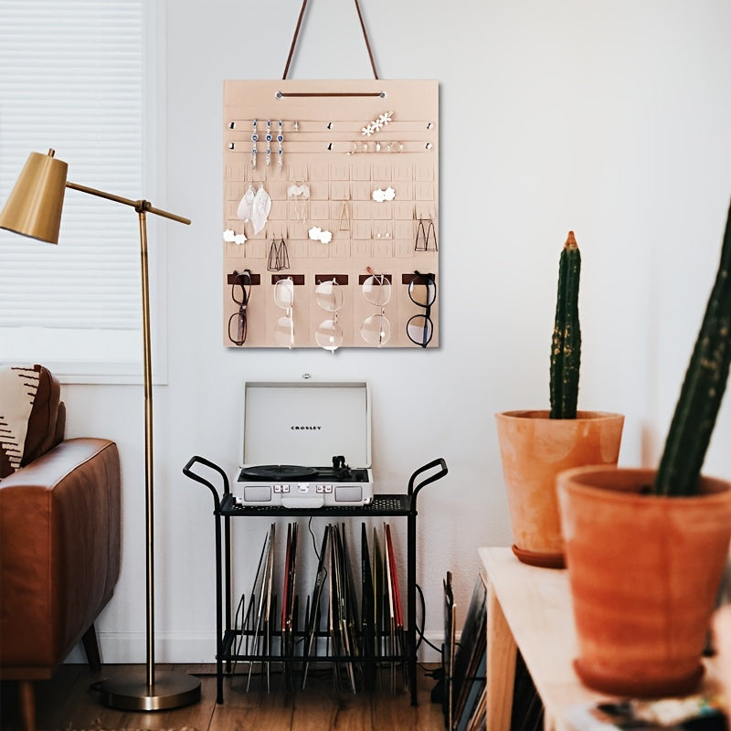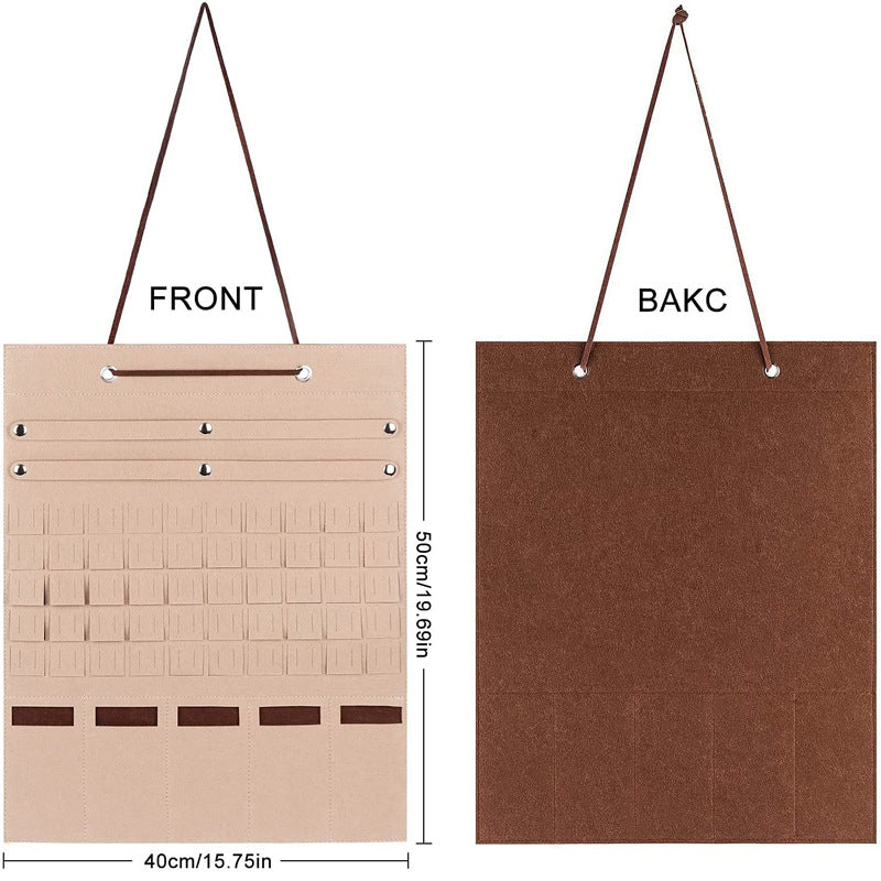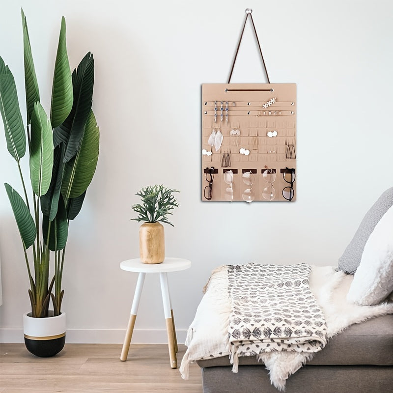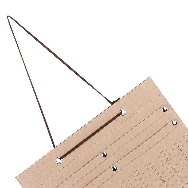Keep your bedroom accessories organized with this hanging pocket storage bag made of felt material. Perfect for storing jewelry, sunglasses, and more.