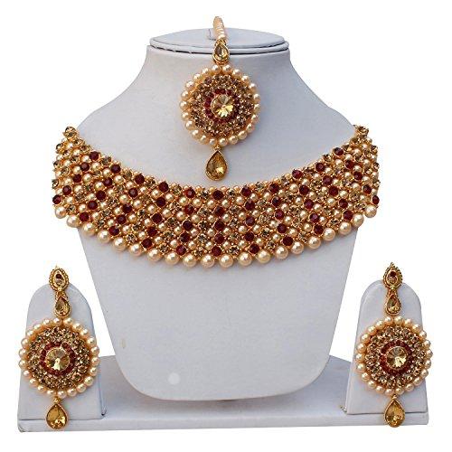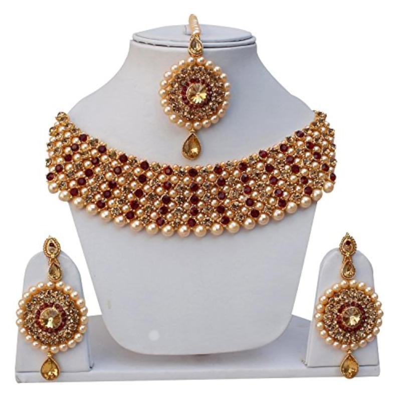 Make a statement with this elegant set featuring a golden plated chain and stunning pearl stone pendant.