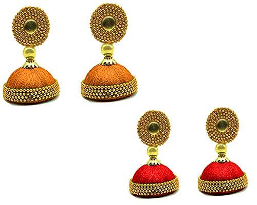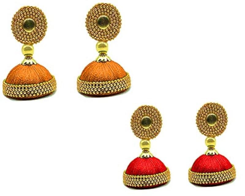 Add a touch of traditional elegance to your outfit with these beautiful jhumki earrings made from silk dori. Available in a variety of colors.