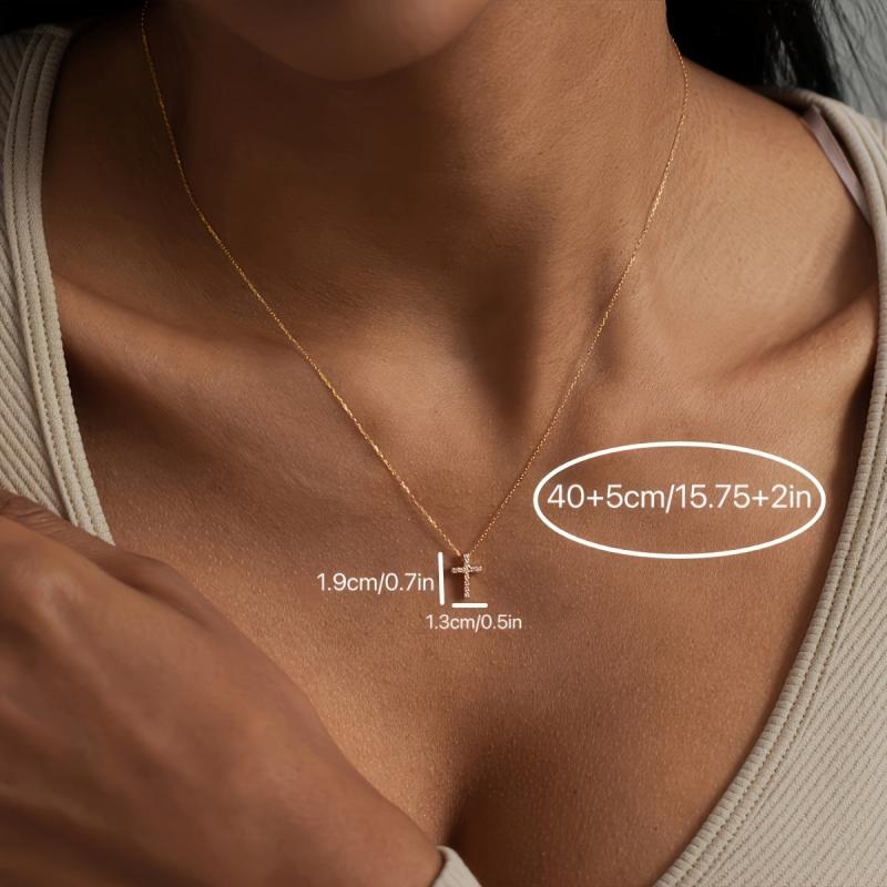 This necklace features a durable iron chain with a golden tone cross pendant.