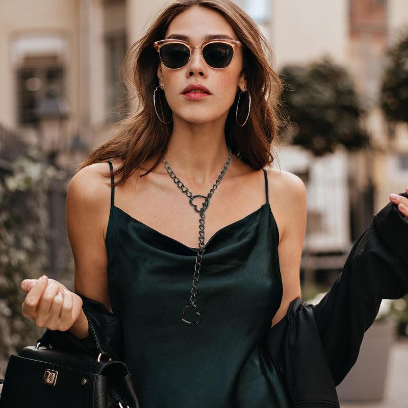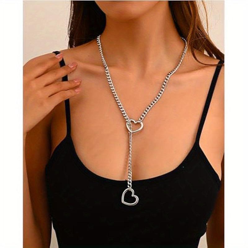 Delicate and perfect for women's everyday party decoration, this double heart slip chain pendant necklace adds a touch of style to any outfit.