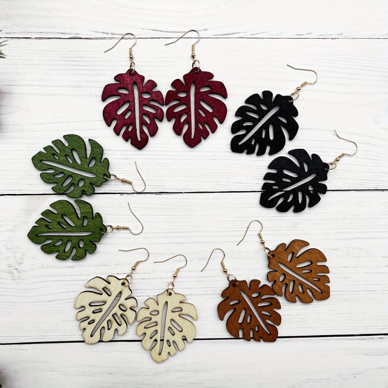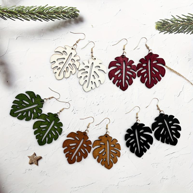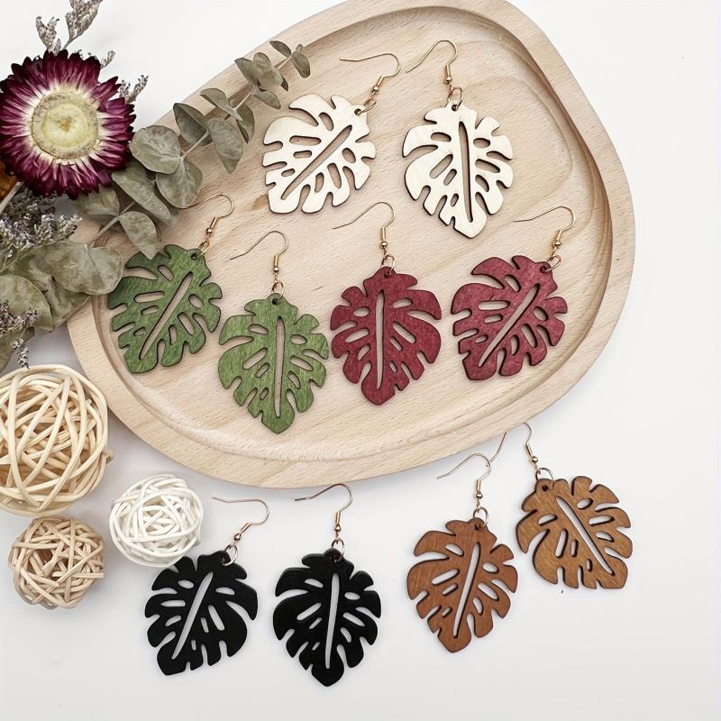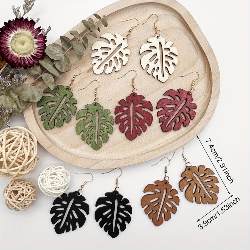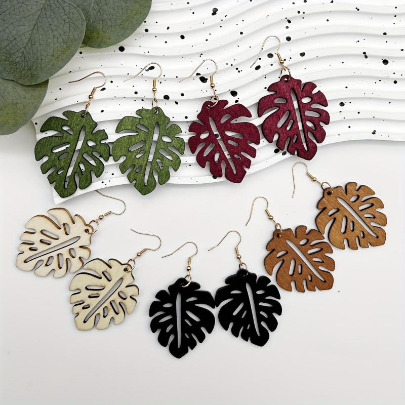Embrace nature with these versatile wooden earrings that feature a hollow leaf design. This set includes 5 pairs of unique wooden earrings perfect for everyday wear.