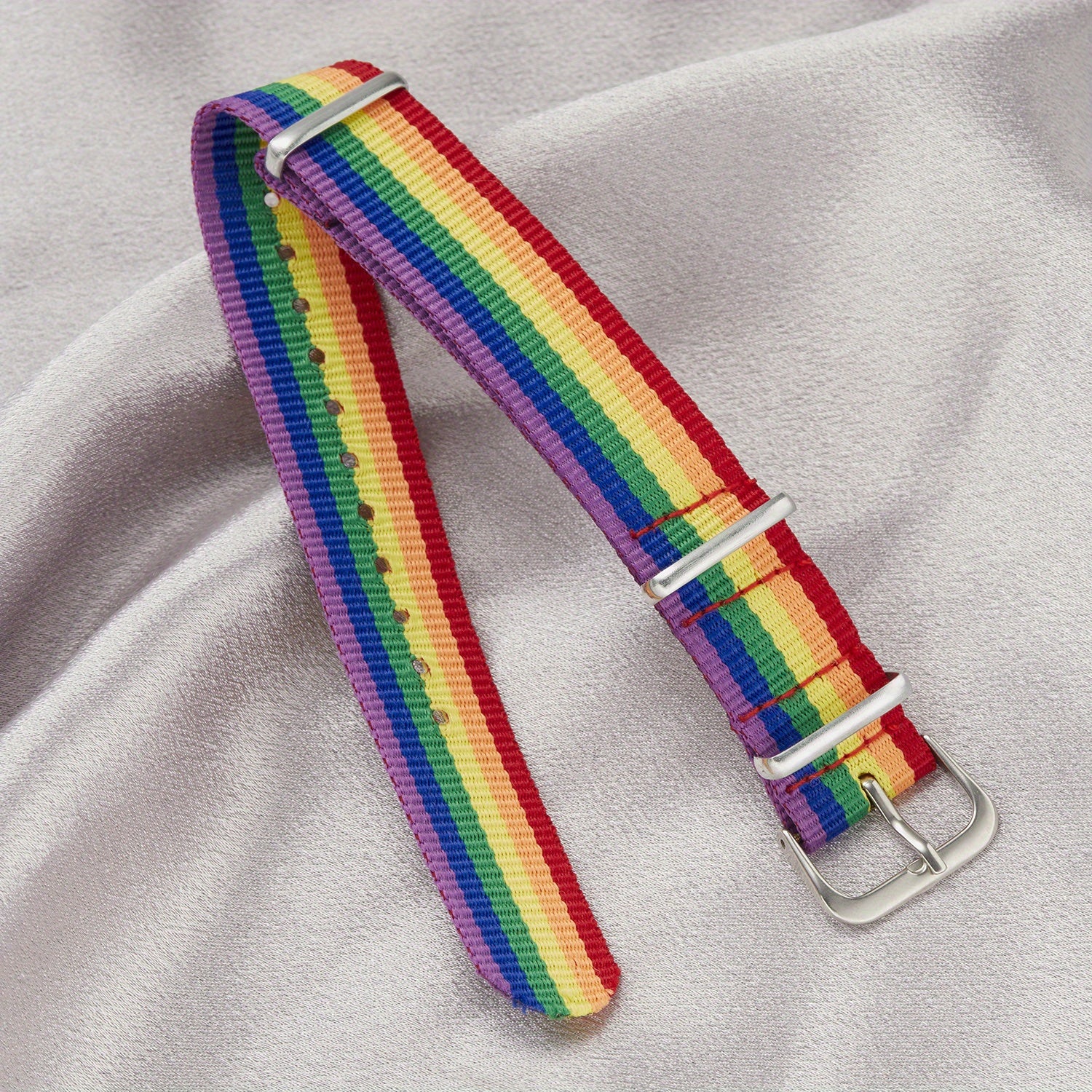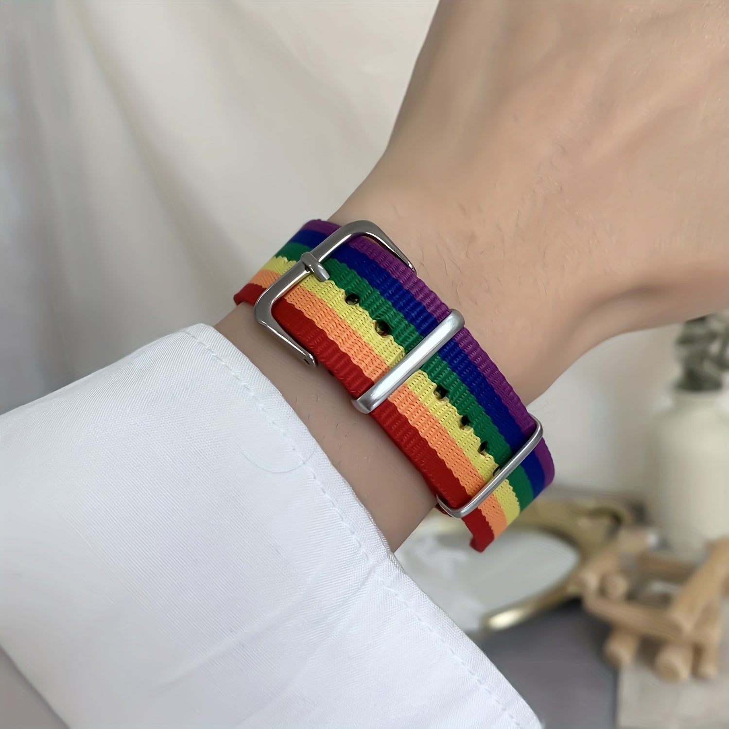 This bracelet features an LGBT rainbow strap design, perfect for men and couples. It's a unique and stylish accessory that symbolizes friendship and love. Great as a gift for yourself or a loved one.