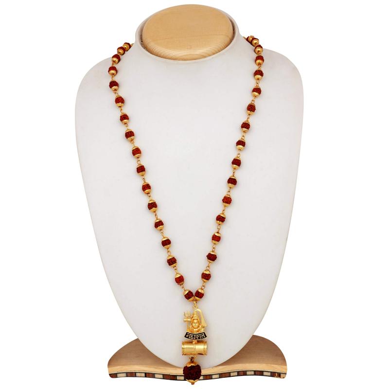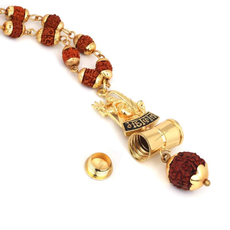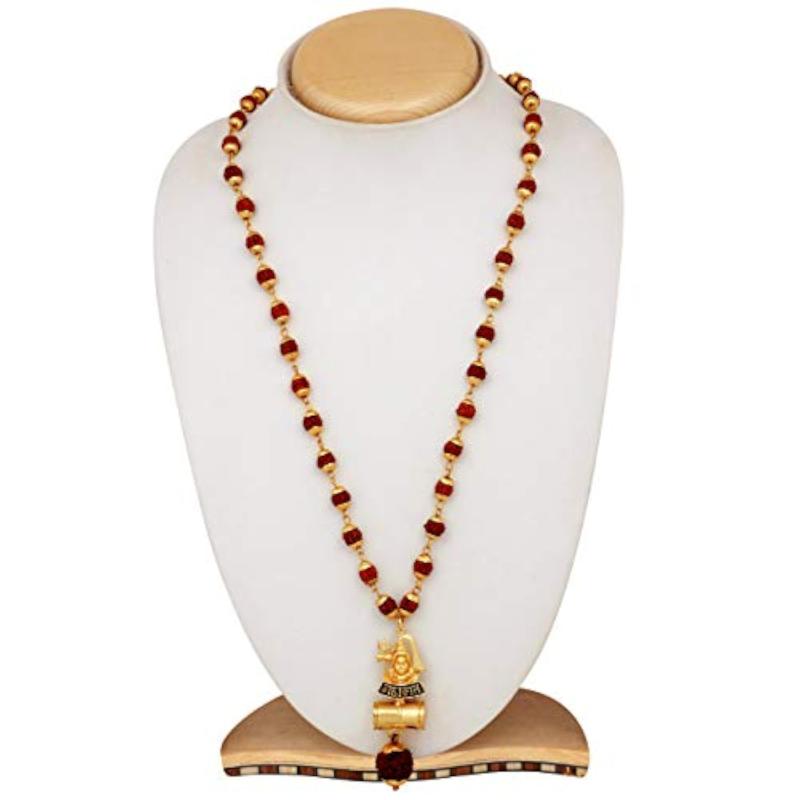 Religious pendant featuring Lord Shiv/Mahakal design with 24 inch Rudraksh mala. Perfect for prayer and spiritual purposes.